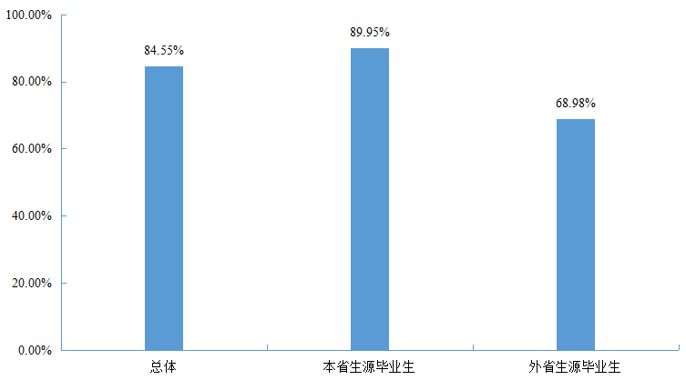 毕业生意向在四川就业的比例为84.55%。其中,本省生源毕业生留川就业意向比例约为89.95%,外省生源毕业生留川就业意向比例约为68.98%。