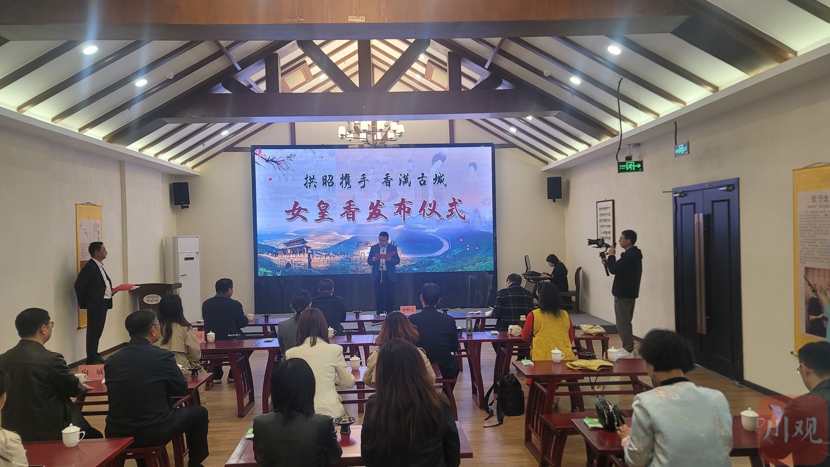 3月17日,位于昭化古城的葭萌驿酒店内香薰渺渺,由广元市昭化区和杭州市拱墅区联合开发的昭化文创产品“女皇香”正式发布。