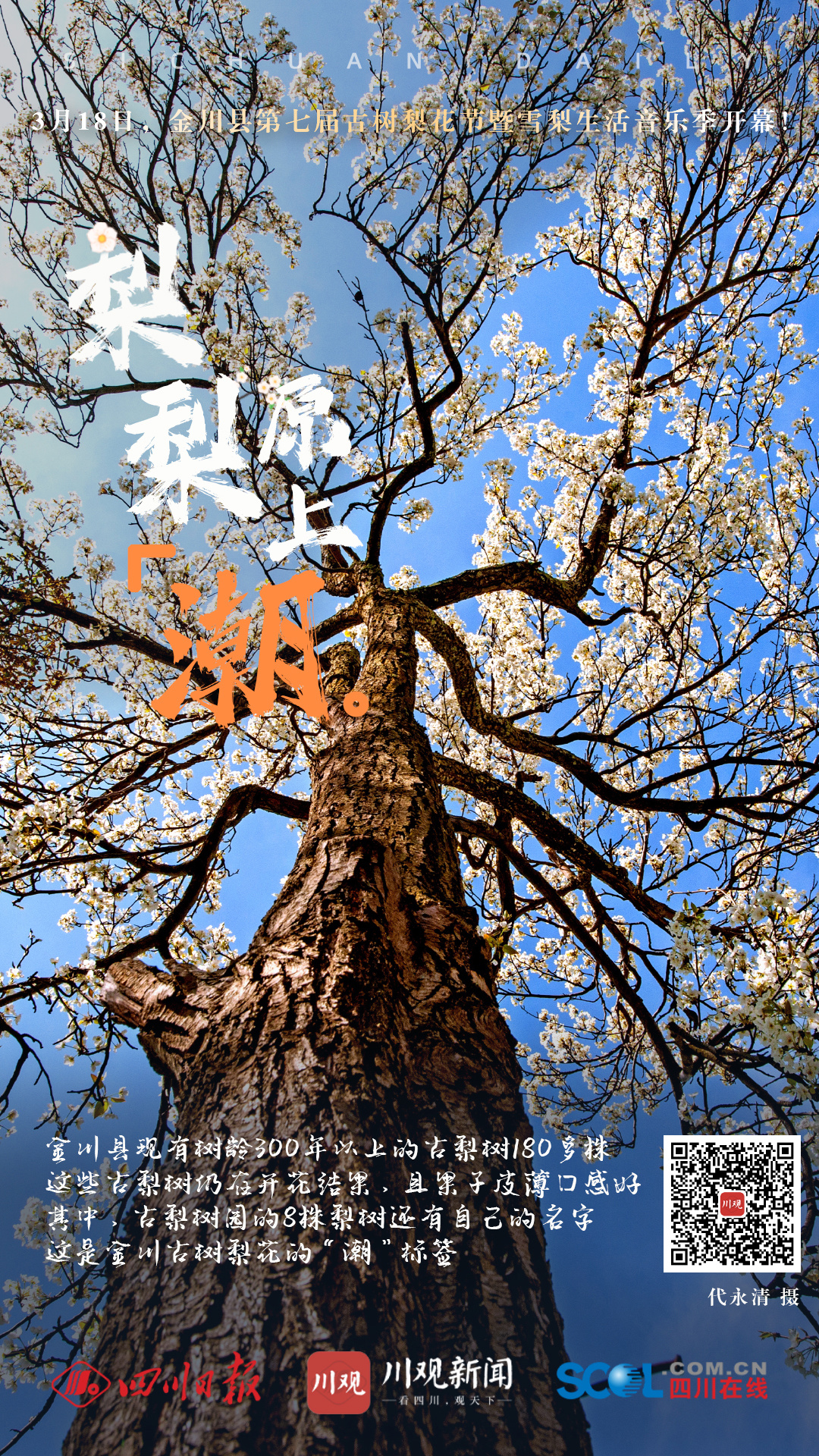 3月17日,一夜春风,金川县庆宁乡梨花大道的梨树花苞缓缓绽放。在梨花大道向一处岔路口走去,一堵石墙上刻着“梨缘”二字,旁边有8株树龄300年以上的古梨树相依相守,展现出强劲的生命力。