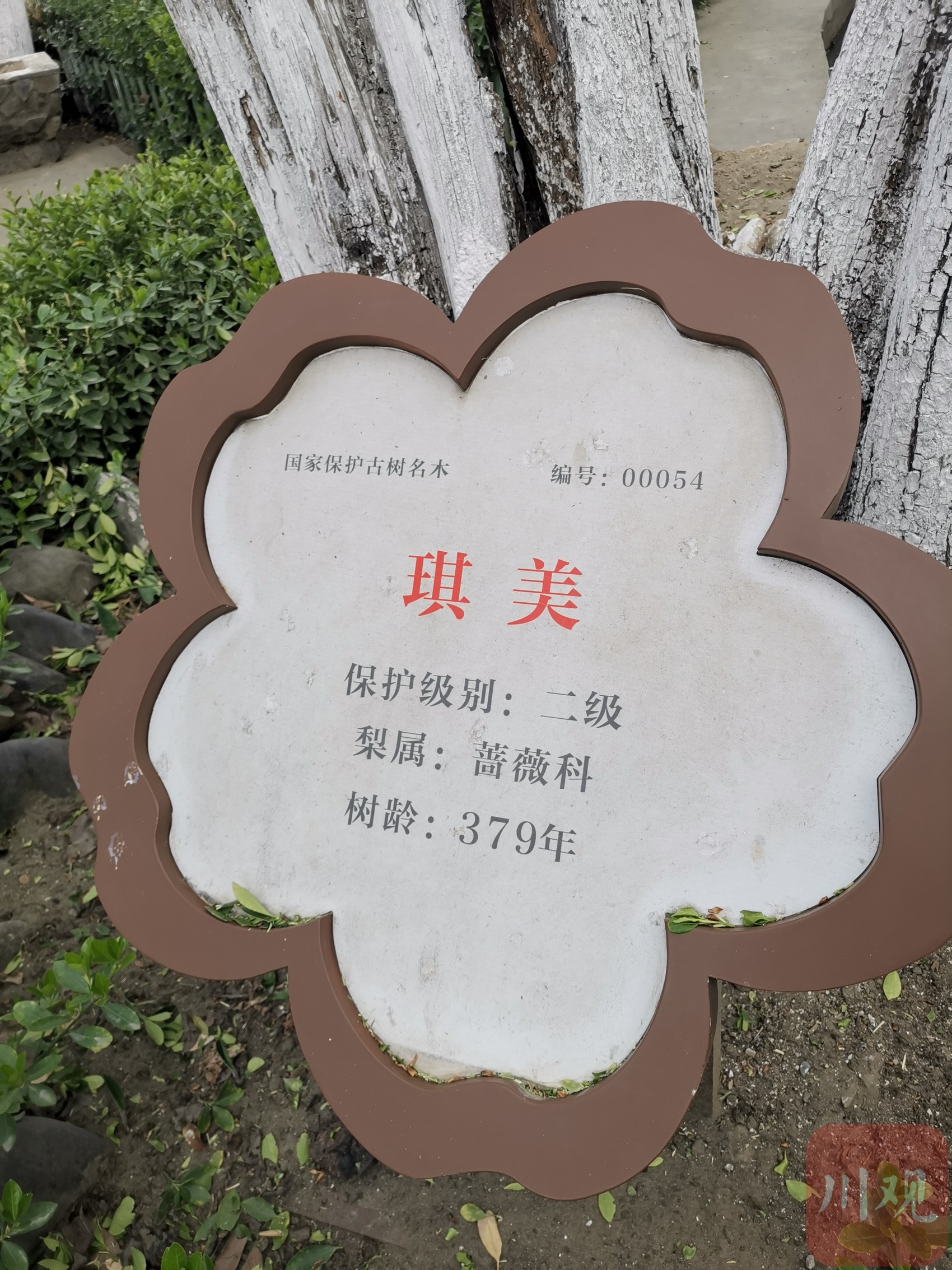 这里被称为古梨树园。与其它梨古树不同,这8株梨树不仅树龄都在300年以上,梨花开得绚丽,而且它们还有自己的名字。名字是由金川县林业部门鉴定的,梨树相关信息一同写在梨花形的牌匾上并放于树下。