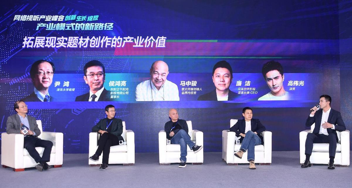 10月14日,在第八届中国网络视听大会上,清华大学教授尹鸿与东阳正午阳光影视公司董事长侯鸿亮、慈文传媒创始人马中骏、完美世界影视董事长廉洁、演员高伟光,共同就“拓展现实题材创作的产业价值”进行探讨。