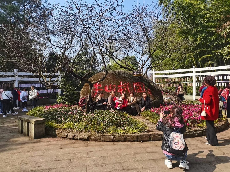 桃花嫣然出篱笑,似开未开最有情。时下,正是桃花盛开的季节。自3月3日开幕以来,尖山桃花会已吸引超过6万人次游客前来游玩,成为自贡火爆的赏花地。
