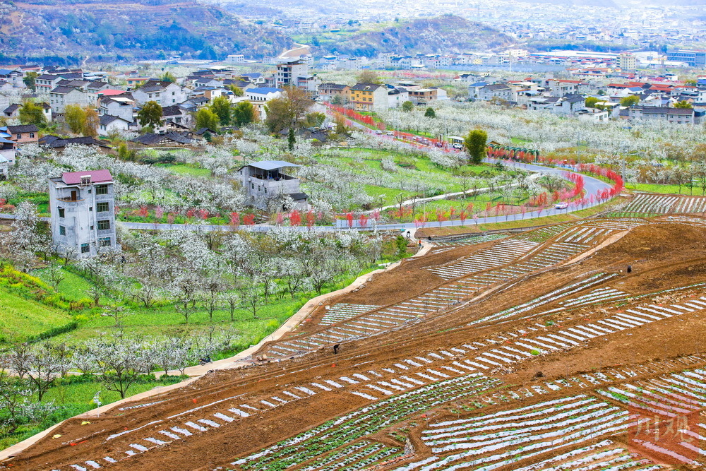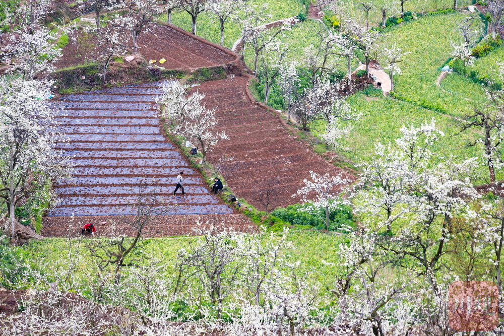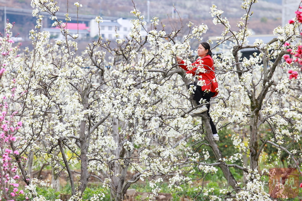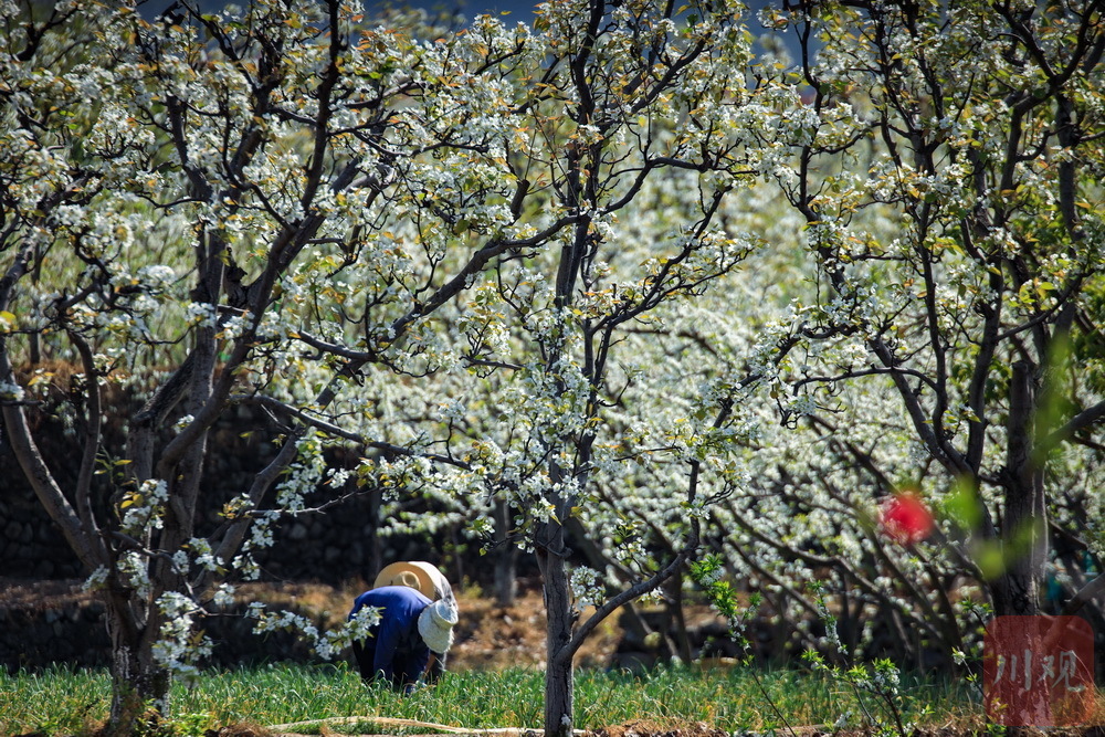 3月19日,走进繁花似锦的雅安汉源县九襄等乡镇,花海果乡内游人如织,田间地头处,村民则抓住天气回暖的有利时机,疏花授粉、修枝剪叶、采摘蒜薹、翻地除草,与竞相开放的梨花、李花等汇聚成为一幅幅娇艳的春耕画卷。