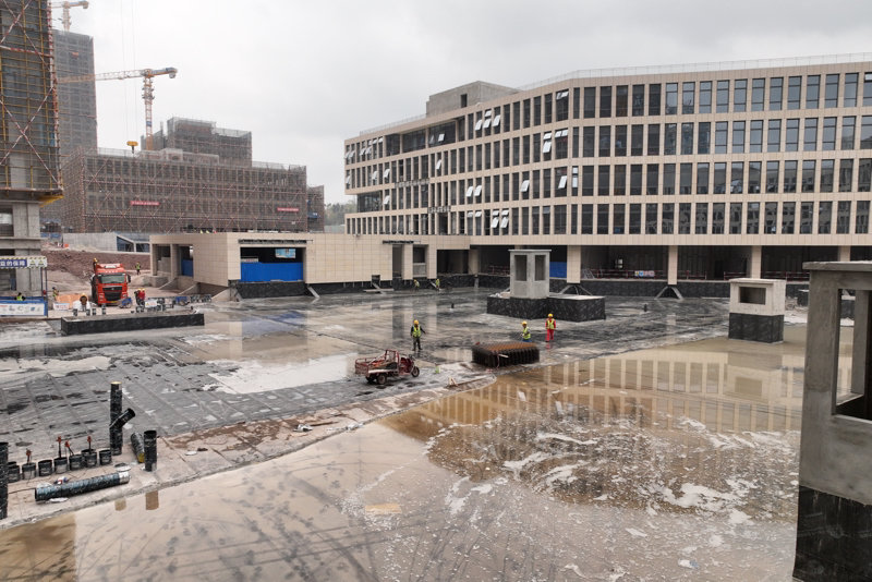 3月20日,内江市东兴区汉安大道东段,内江软件与信息技术服务外包产业园D区项目施工现场一派繁忙的景象。施工车辆来回穿梭,工人们抓紧卸载装修材料。