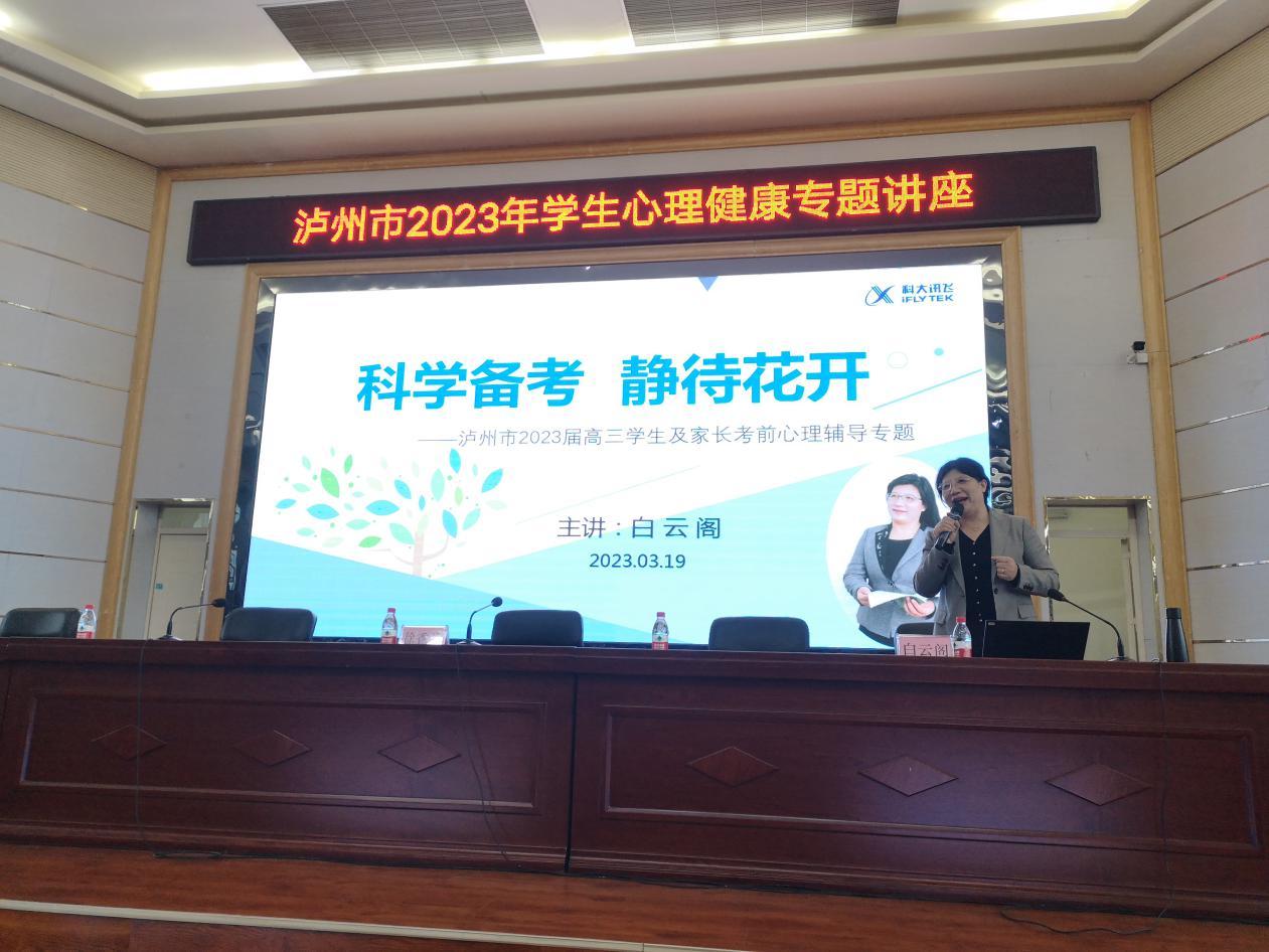 泸州市2023年学生心理健康专题讲座由北京师范大学心理学博士、国家高级职业指导师、科大讯飞智慧心育研究院执行院长常雪亮和中国科学院临床心理学博士、辽宁省心理特级教师白云阁两位老师开展心理教育现场授课和线上直播。