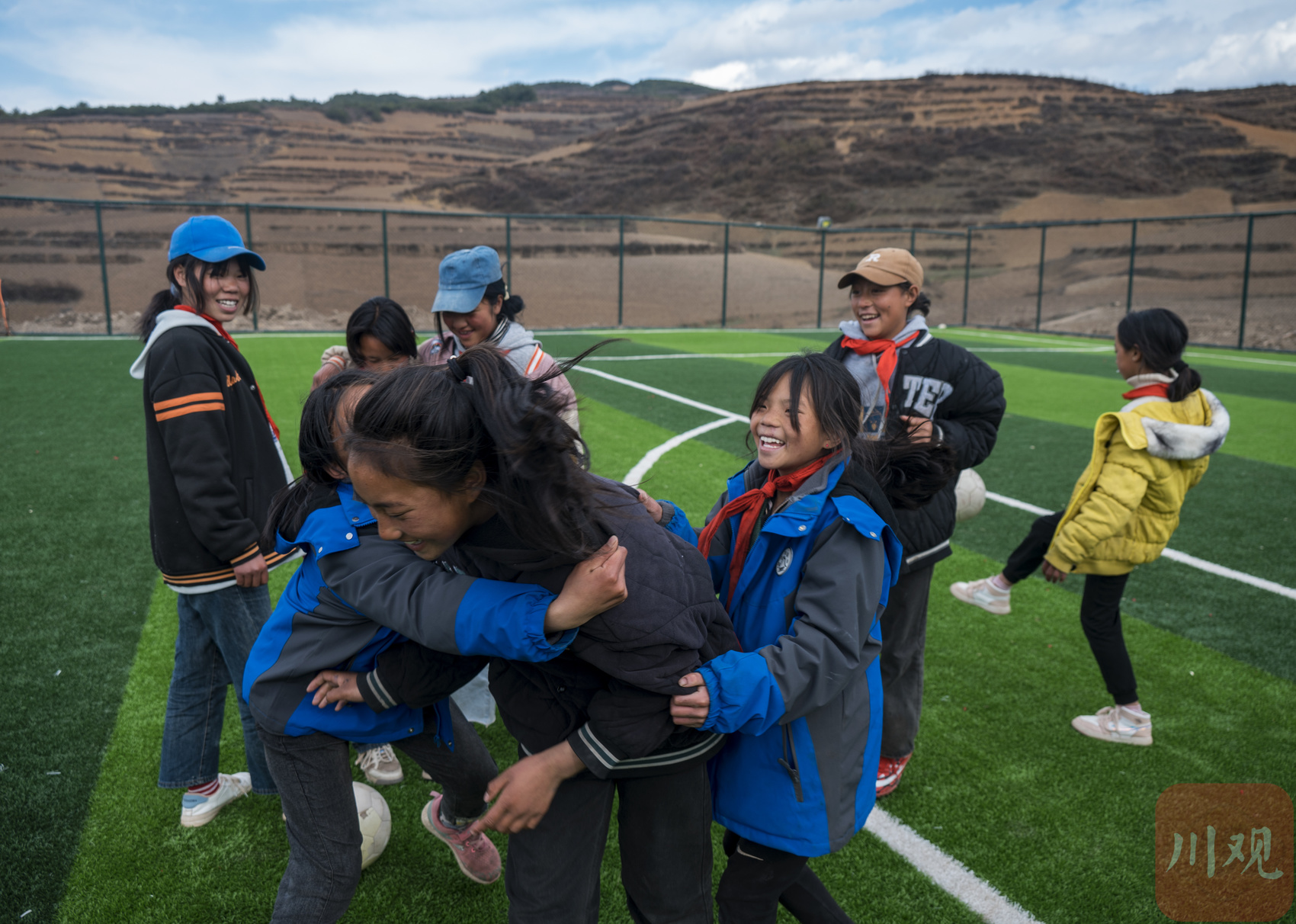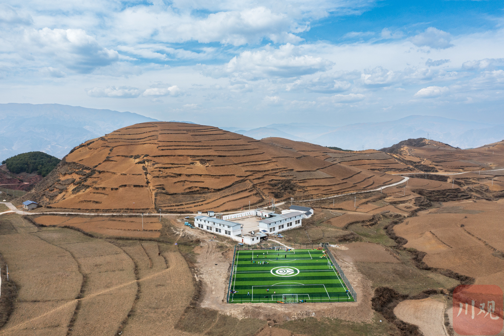 春回大地,漫山遍野的索玛花含苞待放。在海拔2700米的凉山州昭觉县群山中,一块崭新的绿茵场上,一群孩子正奋力奔跑、挥洒汗水,这是独属于昭觉县瓦吾小学的一道风景。这个去年12月底建成的球场,是全国第二座中国女足主题球场——“玫瑰梦想球场”。