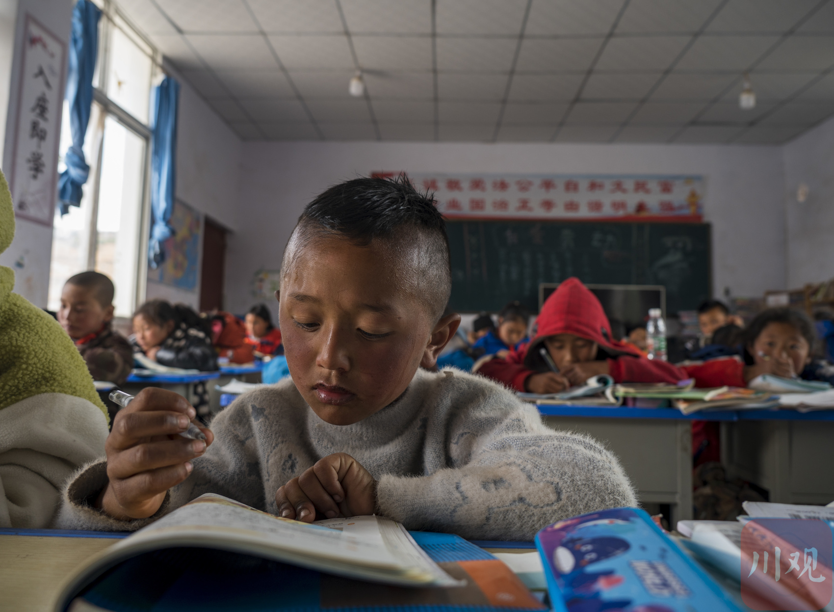 3月16日,9岁的土比红杰在教室中学习,他是球队的新队员。