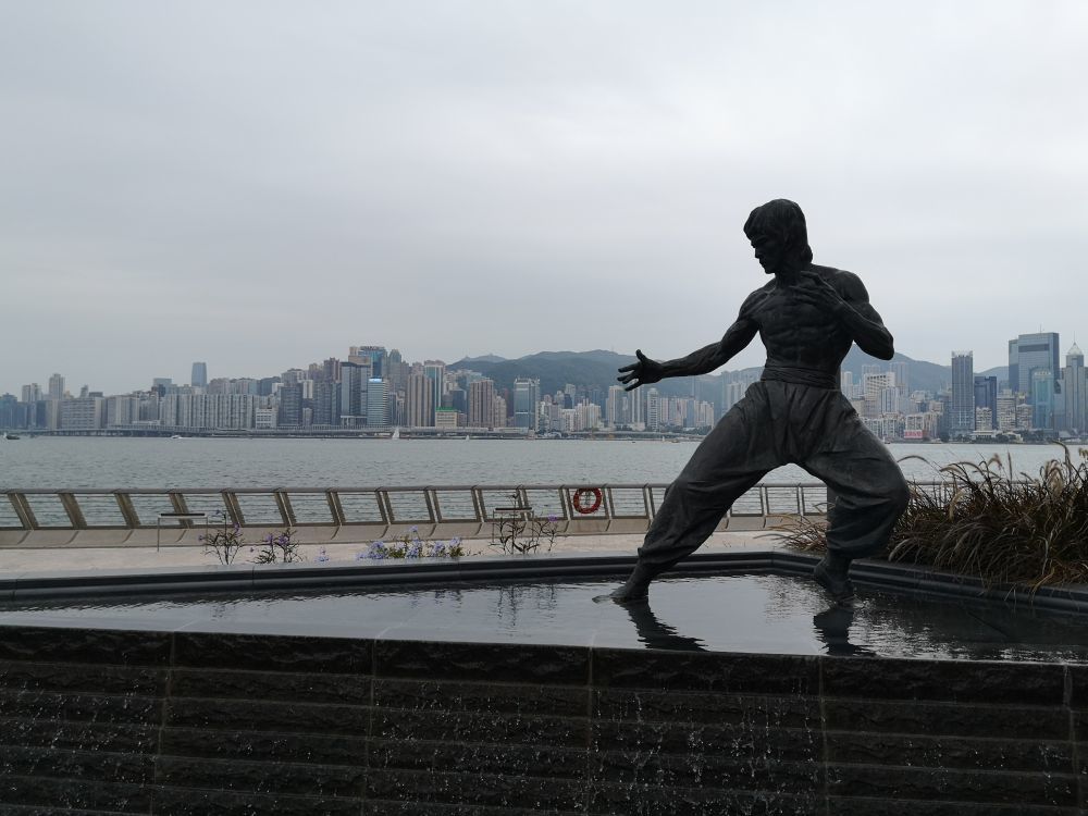 位于香港“星光大道”的李小龙铜像。新华社记者 刘斐 摄