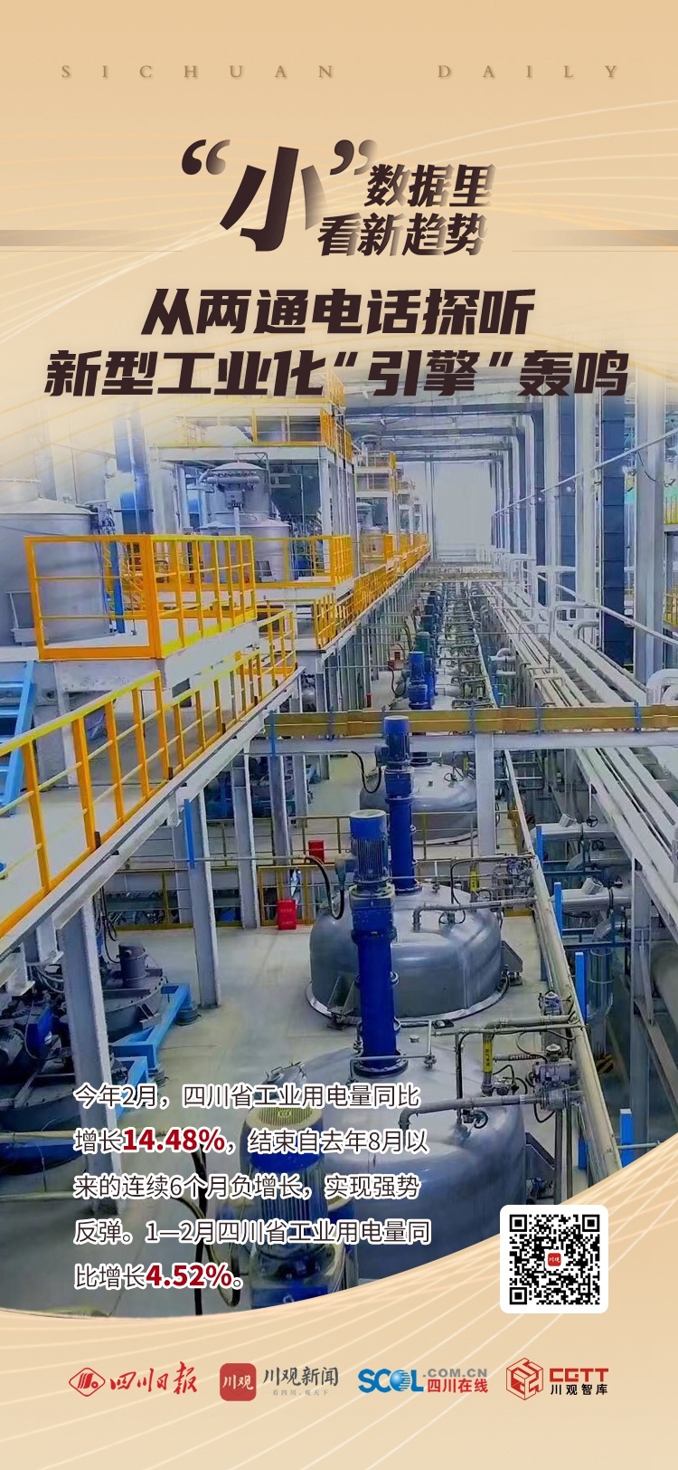 今年2月,四川省工业用电量同比增长14.48%,结束自去年8月以来的连续6个月负增长,实现强势反弹。1—2月四川省工业用电量同比增长4.52%。其中,晶硅光伏产业、动力电池产业持续发力,拉动电气机械和器材制造业用电量同比增长134.26%。