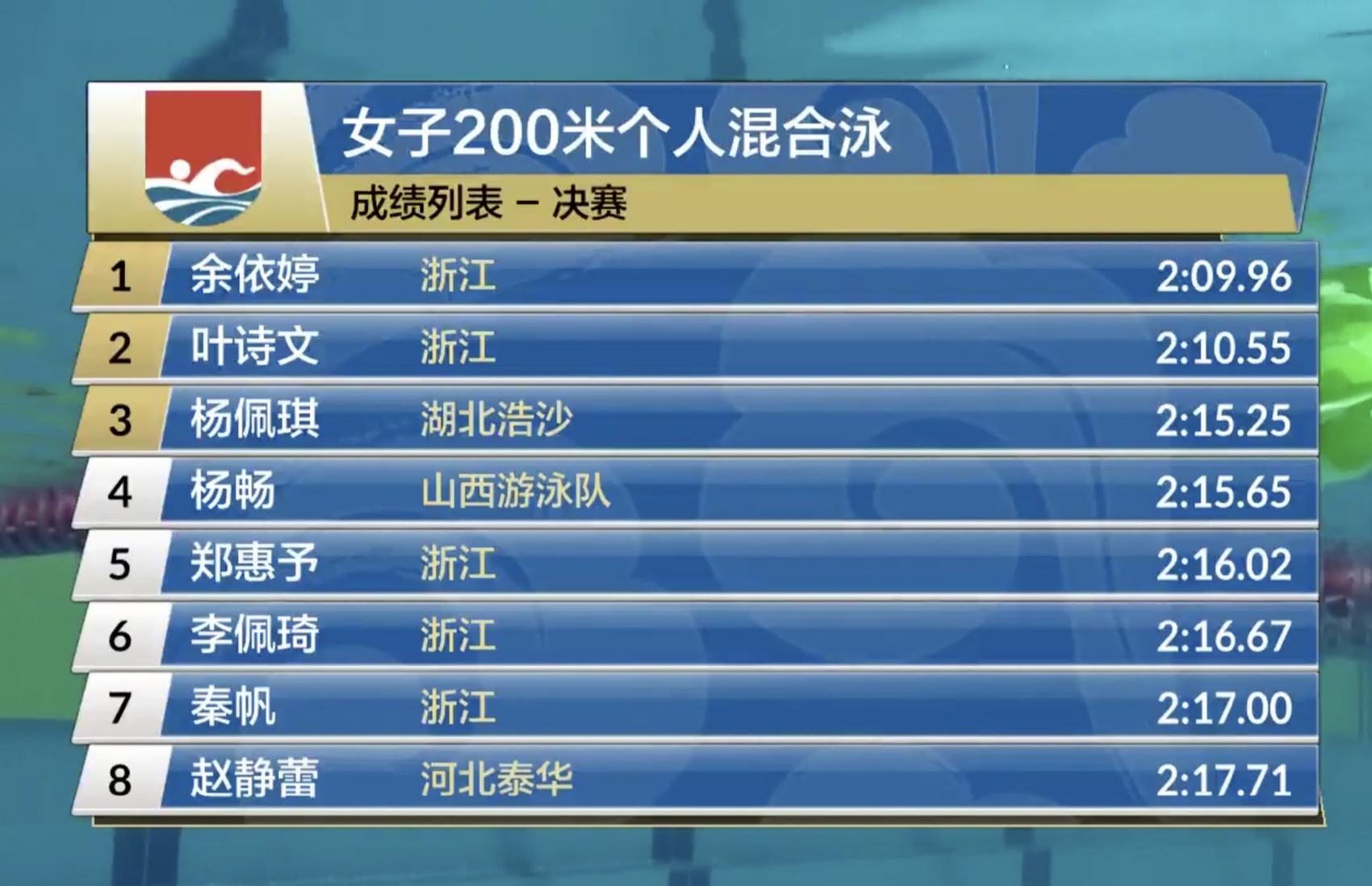 叶诗文参加全国春季游泳锦标赛成绩截图