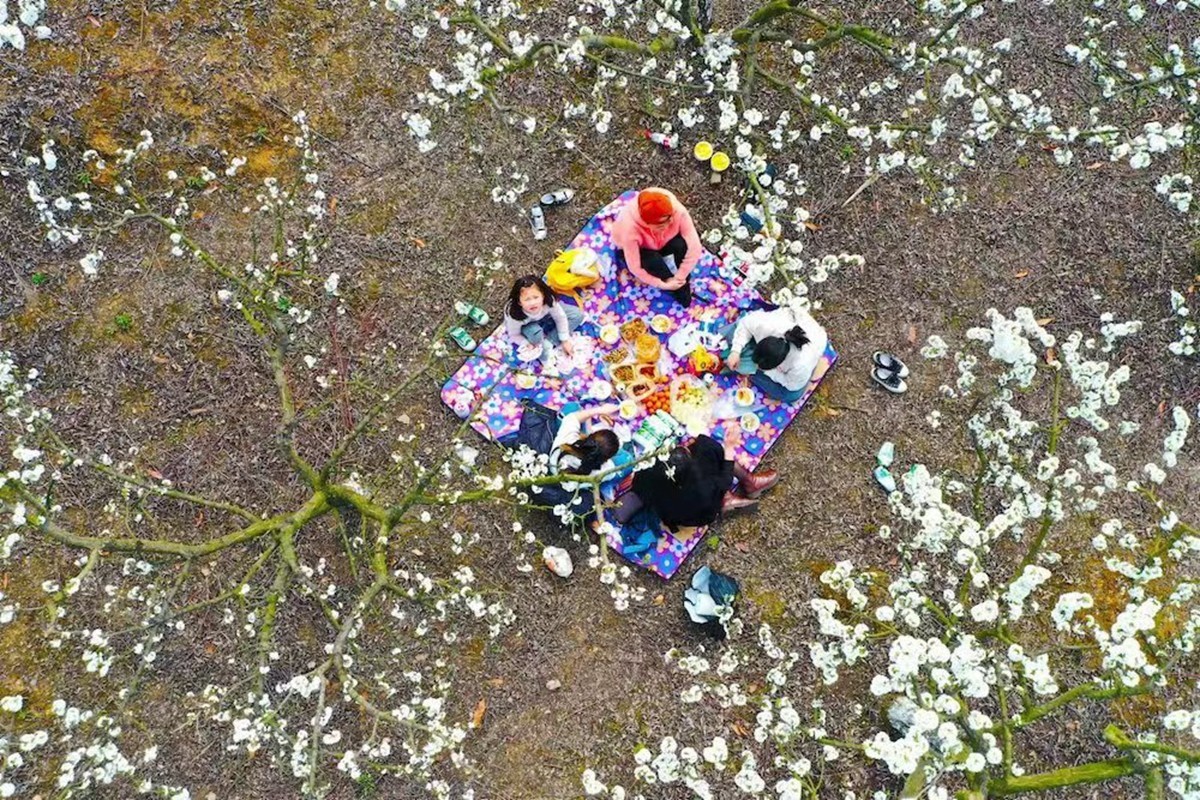 今年李花节在以往的基础上扩大了规模,活动载体和游赏乐趣更为丰富。漫步李园,不仅可以赏花观景,还可以在月亮秋千、古风长廊、想你路牌、诗歌海洋等互动点位打卡,夜间更有露营篝火晚会活动,内容包括露营烧烤、篝火晚会、乐队驻唱、互动小游戏等。