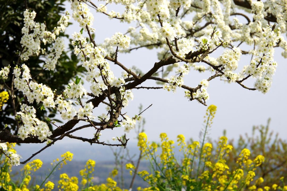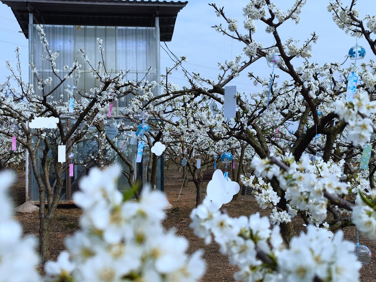 近日,江油市大堰镇开凤村李园中李花盛开,成片的雪白花朵,如团团云絮,漫卷轻飘,美不胜收,各地游客纷至沓来。