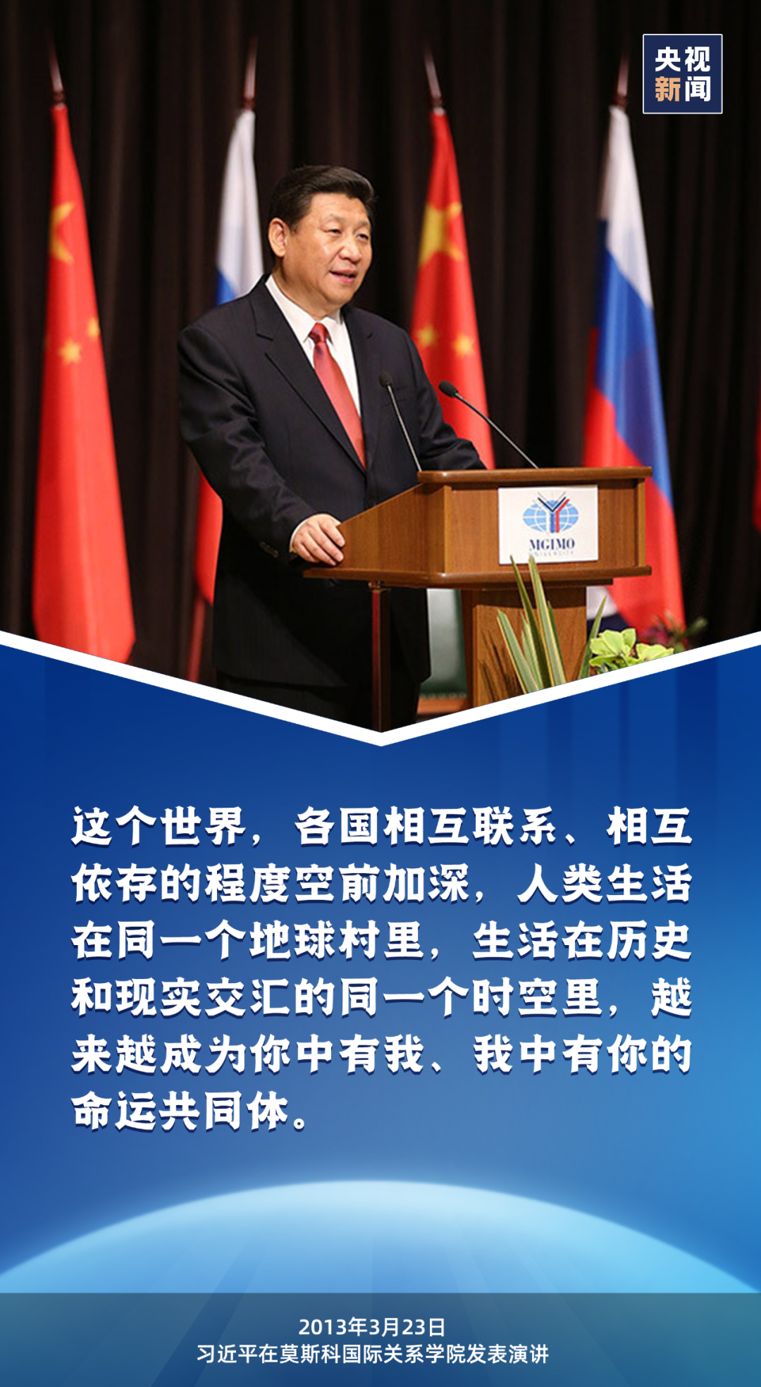 十年前的今天,2013年3月23日,国家主席习近平在俄罗斯莫斯科国际关系学院发表演讲,首次面向世界提出人类命运共同体理念。