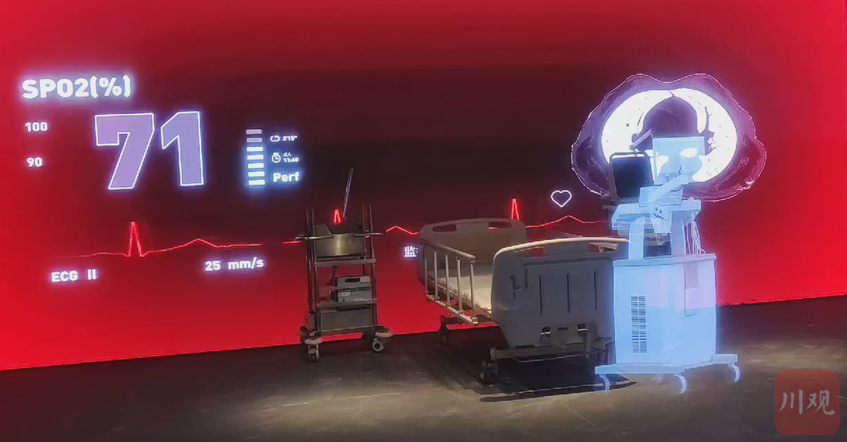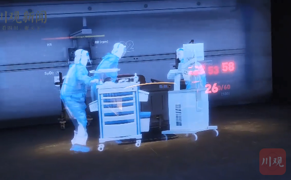 在展览的第二单元“尽锐出战 拯救生命”中,有一项展品引来不少观众驻足,那就是——幻影成像ICU场景。