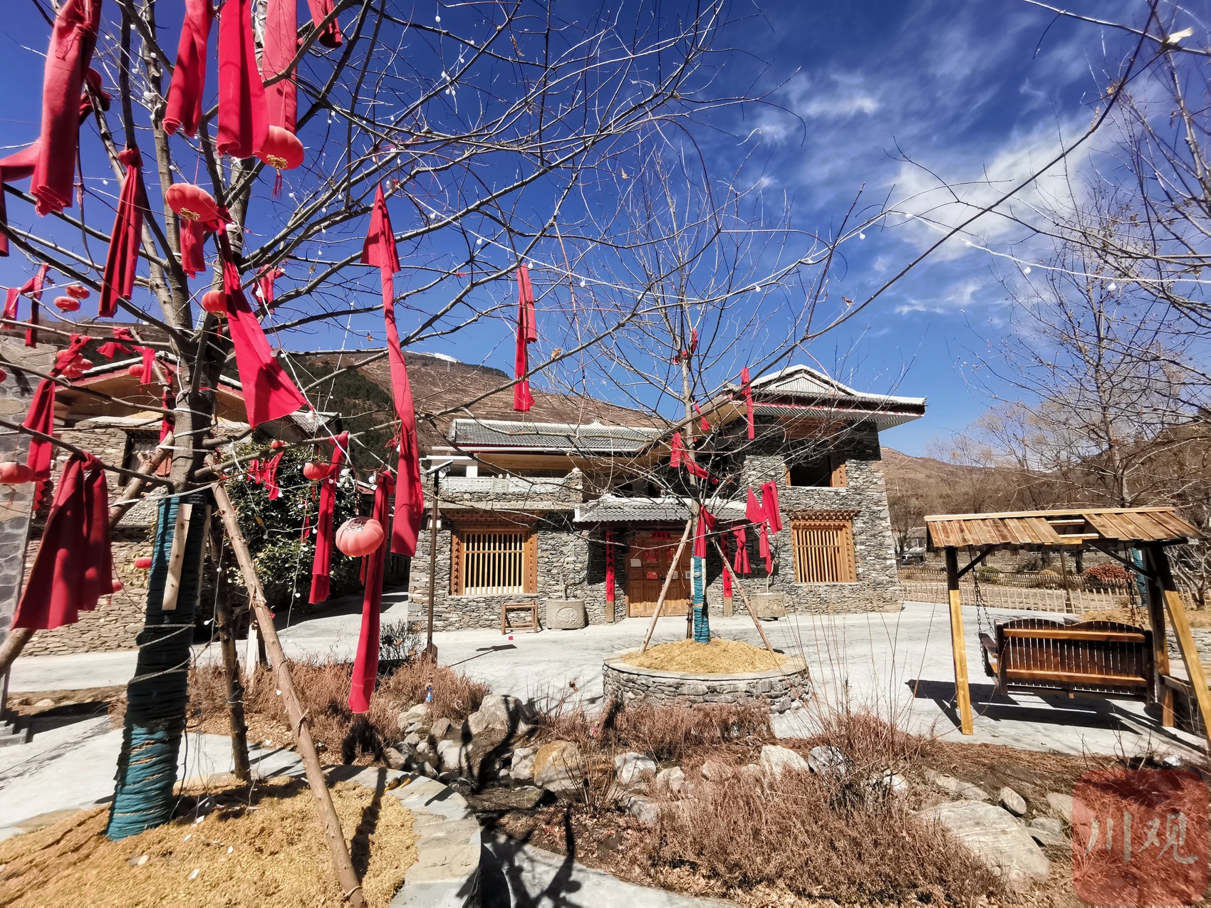 正说着,一行人已经来到篝火广场,后面就是杜秀娟正在打造的民宿,房间的基础装修已经完成,现在正在进行庭院改造。“房子的主人常年在外务工,我就把房子租下来了,现在已经施工十多天了,争取五一劳动节开业。”杜秀娟透露,还有一栋民宿和一家集小酒馆和餐饮于一体的餐饮店正在打造,主打羌族特色文化和美食。