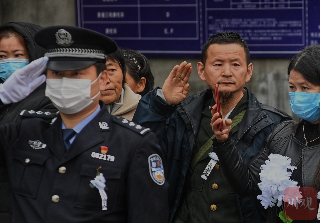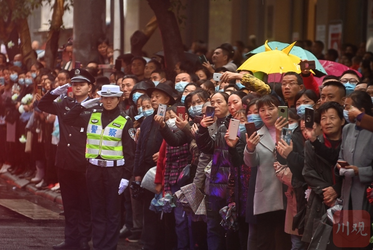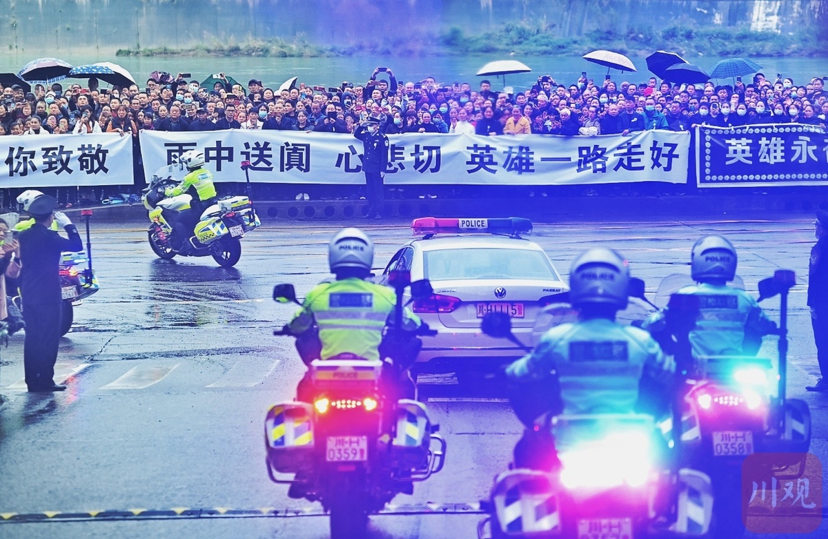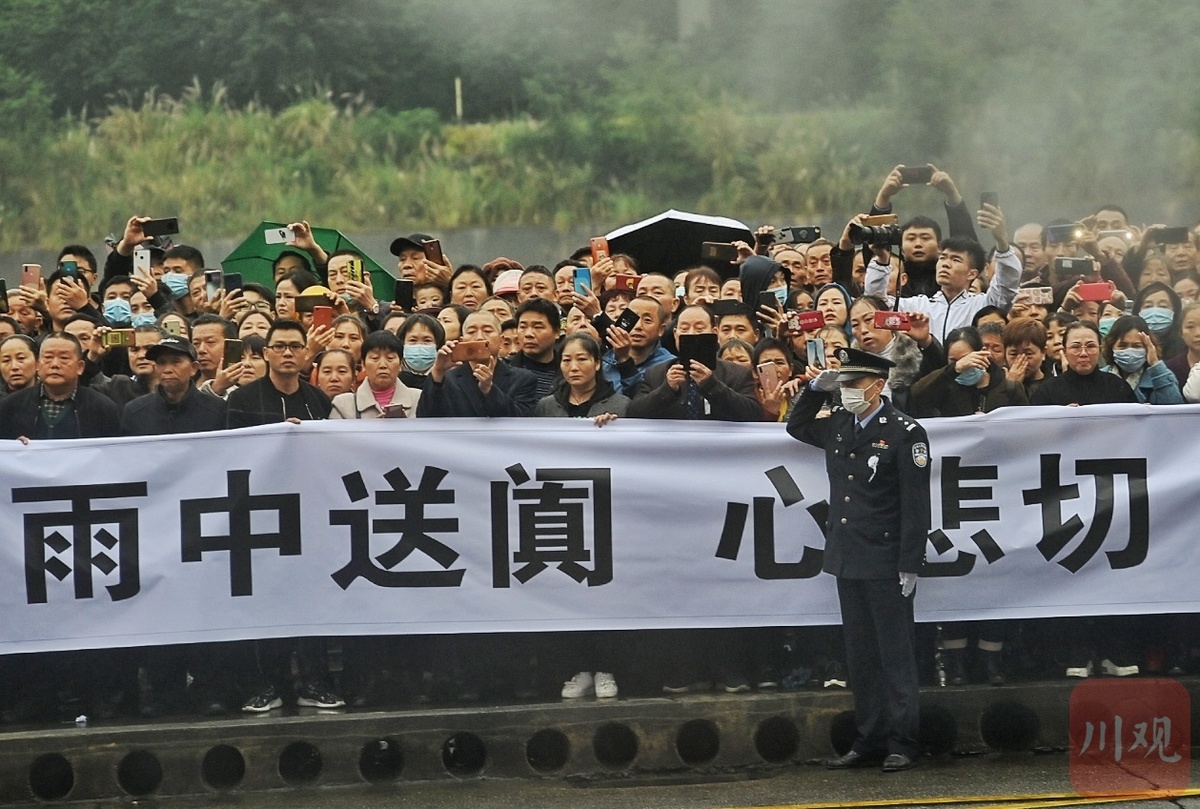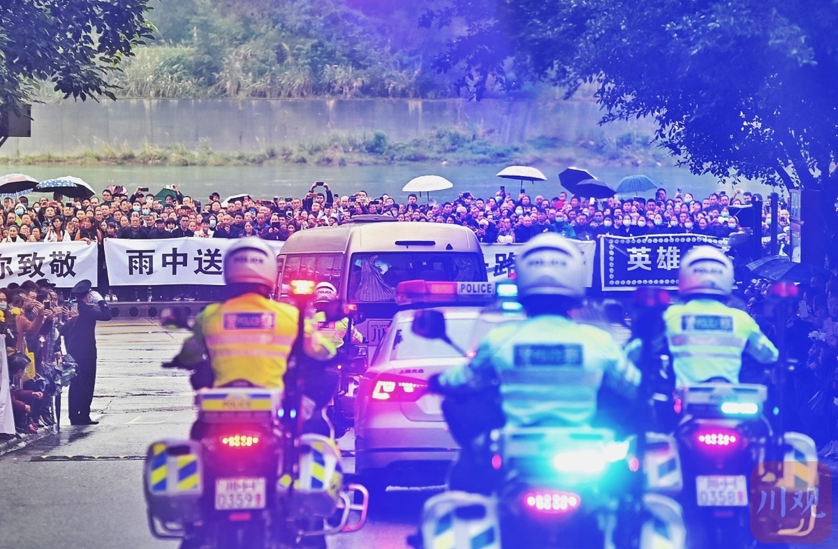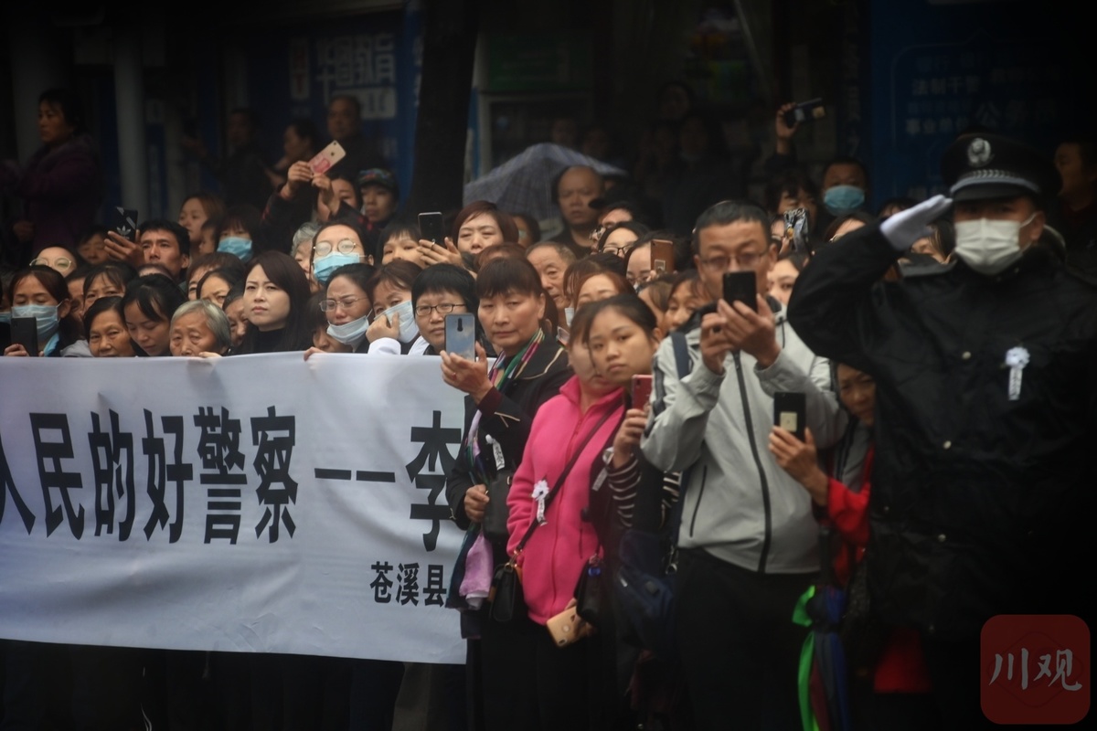10月15日上午,苍溪因公牺牲民警李雨阗遗体送别仪式在苍溪县城举行,数万群众夹道相送李雨阗。