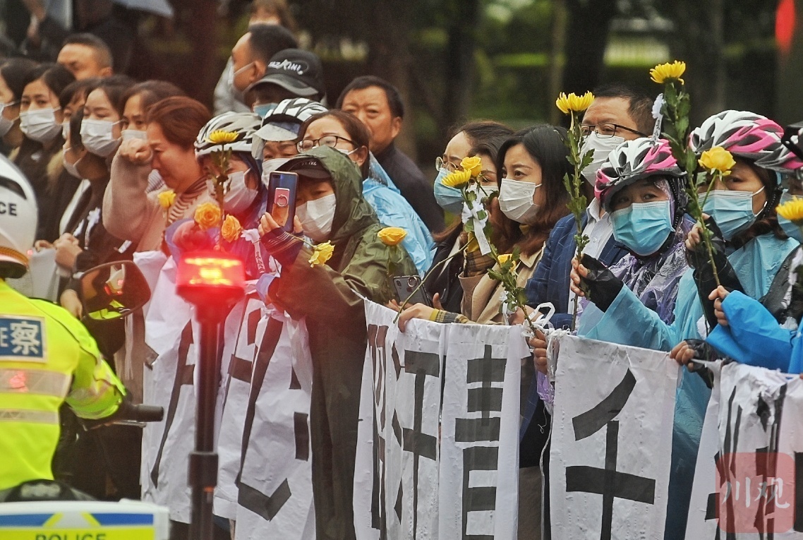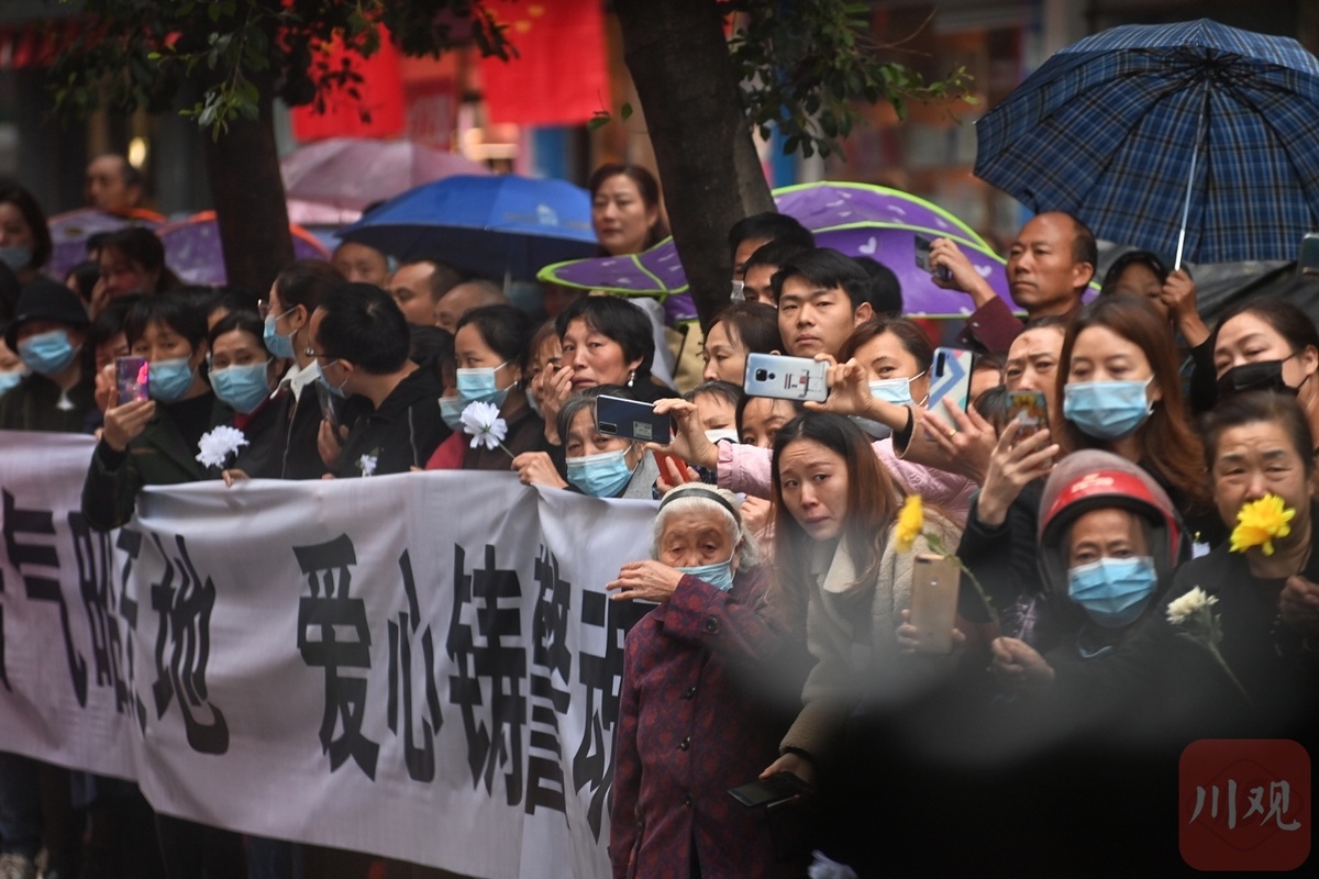天公垂泪,江水呜咽,滨江路月亮湾,数万苍溪民众站满江边,苍山含泪呼赤子,溪水悲音送英雄。李雨阗,一路走好!