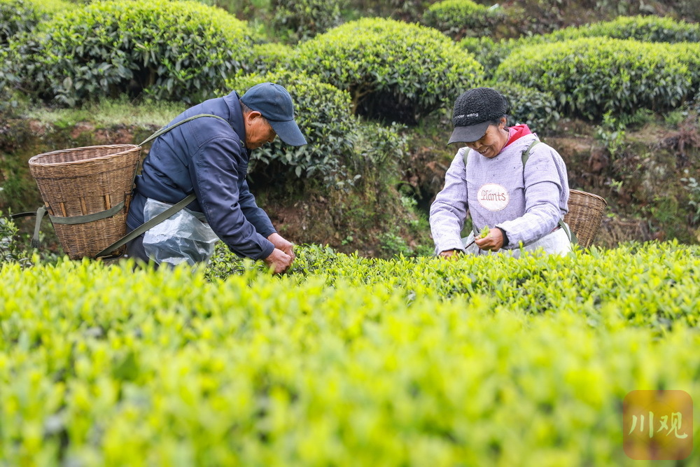 眼下已进入春茶采销旺季,3月23日,走进沐浴在清风雅雨间的雅安雨城区草坝镇顶峰、范山等茶园,跳入眼眶的全是密集而又柔嫩的新芽,不少茶农冒雨穿梭其间,正加班加点采摘春茶。