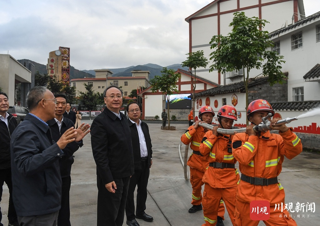 10月14日,省委副书记、省长尹力在西昌卫星发射基地,督导检查基地周边区域森林防灭火通道、消防水池、消防栓等基础设施建设情况。