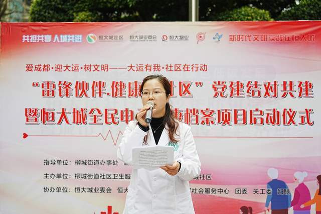 高血压患者多久需要到医院进行随访?到上级医院就诊时如何让医生快速查看既往就医记录?远在外地的子女想随时关注父母的健康应该怎么办?……近日,在成都市温江区恒大城社区举行的“‘雷锋伙伴·健康到社区’党建结对共建暨恒大城全民电子健康档案项目启动仪式”现场,家庭医生一一解答了居民提出的问题。
