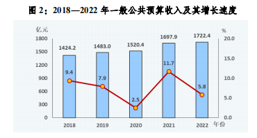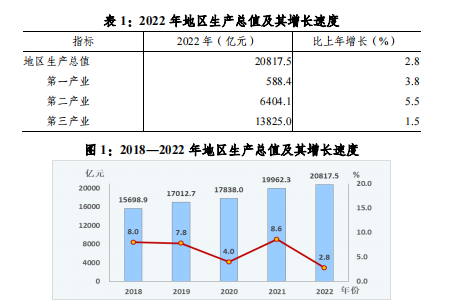 根据地区生产总值统一核算初步结果,全年实现地区生产总值(GDP)20817.5亿元,按可比价格计算,比上年增长2.8%。分产业看,第一产业增加值588.4亿元,增长3.8%;第二产业增加值6404.1亿元,增长5.5%;第三产业增加值13825.0亿元,增长1.5%。三次产业对经济增长的贡献率分别为4.9%、59.6%、35.5%。三次产业结构为2.8 : 30.8 : 66.4。按常住人口计算,人均地区生产总值98149元,增长2.0%。全年完成一般公共预算收入1722.4亿元,扣除留抵退税因素后增长5.8%,按自然口径计算增长1.5%。其中税收收入1267.8亿元,扣除留抵退税因素后增长5.3%,按自然口径计算下降0.4%,占一般公共预算收入比重达73.6%。一般公共预算支出2435.0亿元,比上年增长8.8%。税务部门组织税费收入7359.4亿元,其中组织税收收入(不含海关代征)3129.0亿元,下降4.5%,扣除留抵退税因素后增长3.1%。全年全社会固定资产投资比上年增长5.0%。分产业看,第一产业投资增长7.1%;第二产业投资下降0.9%,其中工业投资增长1.2%;第三产业投资增长6.6%。分经济类型看,国有经济投资增长13.5%;民间投资增长5.4%。基础设施投资下降7.2%。重点区域投资较快增长,四川天府新区成都直管区、成都高新区、成都东部新区完成投资分别增长8.9%、8.5%、7.7%。全年居民消费价格(CPI)比上年上涨2.4%,其中交通和通信类上涨5.8%,衣着类上涨3.3%,生活用品及服务类上涨2.9%,食品烟酒类上涨2.4%,教育文化和娱乐类上涨2.0%,居住类上涨1.3%,医疗保健类下降0.3%。商品零售价格上涨2.8%。年末常住人口2126.8万人,比上年末增加7.6万人,增长0.4%。其中,城镇常住人口1699.1万人,常住人口城镇化率79.9%,比上年末提高0.4个百分点。年末户籍人口1571.6万人,比上年末增加15.4万人,户籍人口城镇化率68.8%。