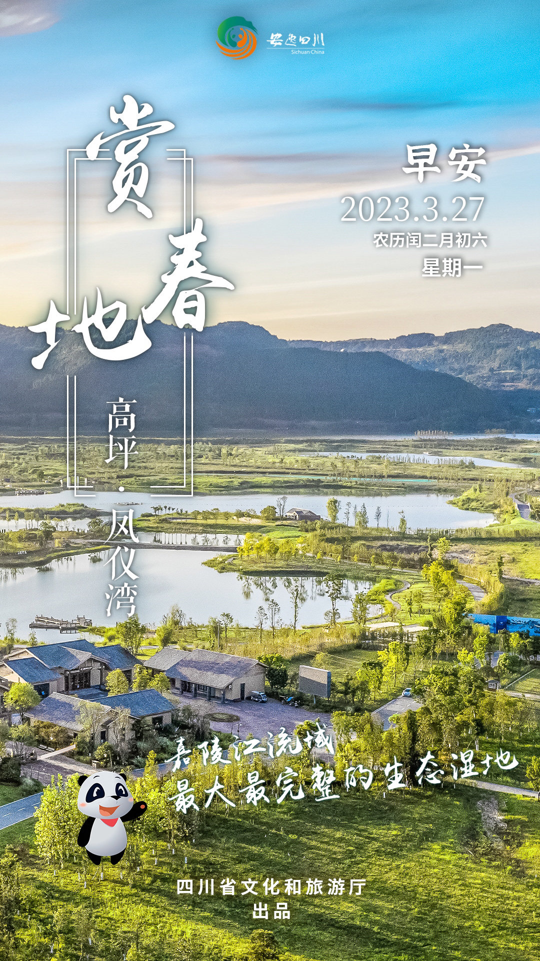 3月27日,星期一。今天安逸四川日历海报开启赏春地之旅,走进南充市高坪区的凤仪湾,感受嘉陵江流域最大最完整的生态湿地之美。