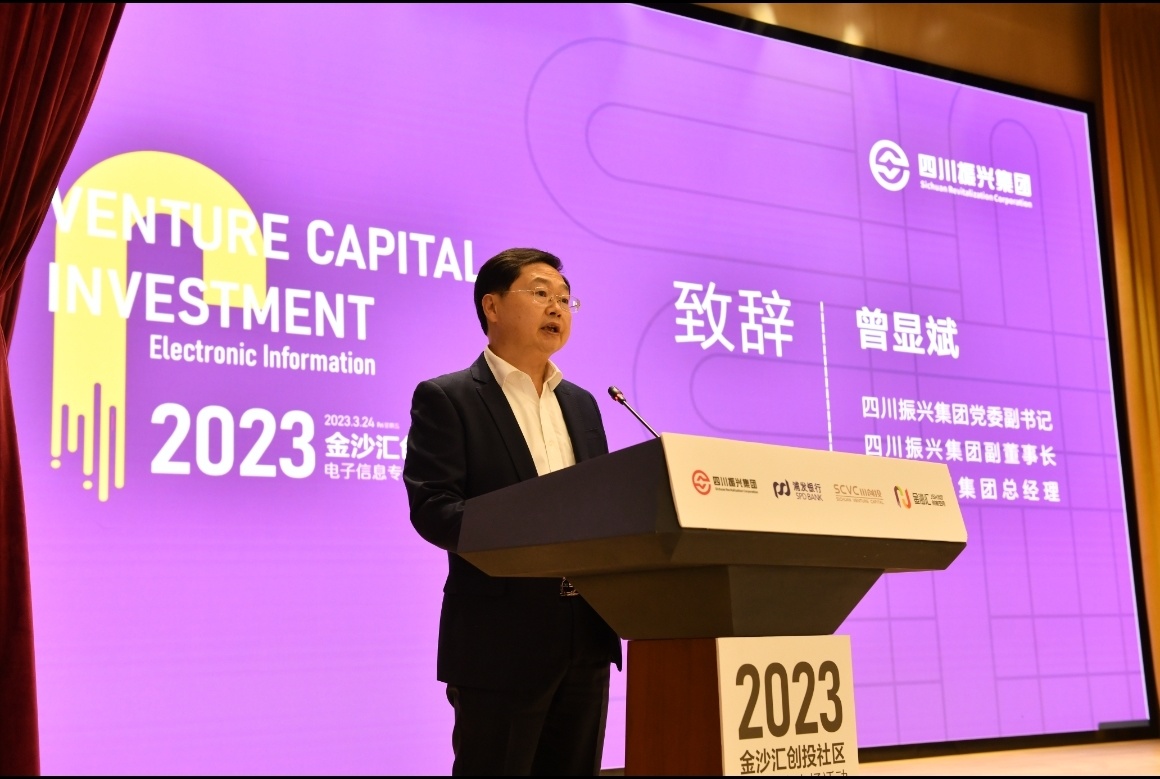 3月24日下午,由四川产业振兴发展投资基金有限公司(以下简称“四川振兴集团”)与浦发银行成都分行联合主办,四川创新发展投资管理有限公司承办的“2023金沙汇创投社区(电子信息)专场活动”在四川振兴集团双创基地举行。来自四川省科技厅、成都市科技局以及科研院所、行业协会、投资机构、领军企业等单位的120余位嘉宾莅临活动现场。四川振兴集团党委副书记、副董事长、总经理曾显斌,浦发银行成都分行党委委员赵健分别发表致辞。