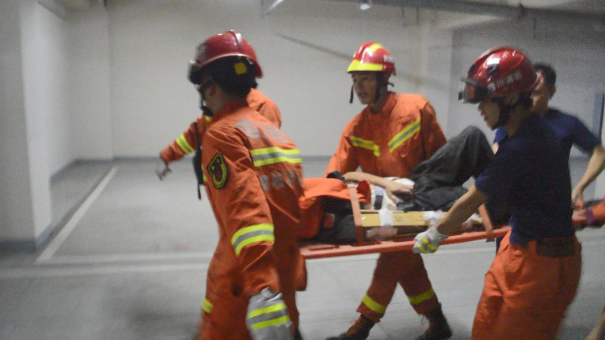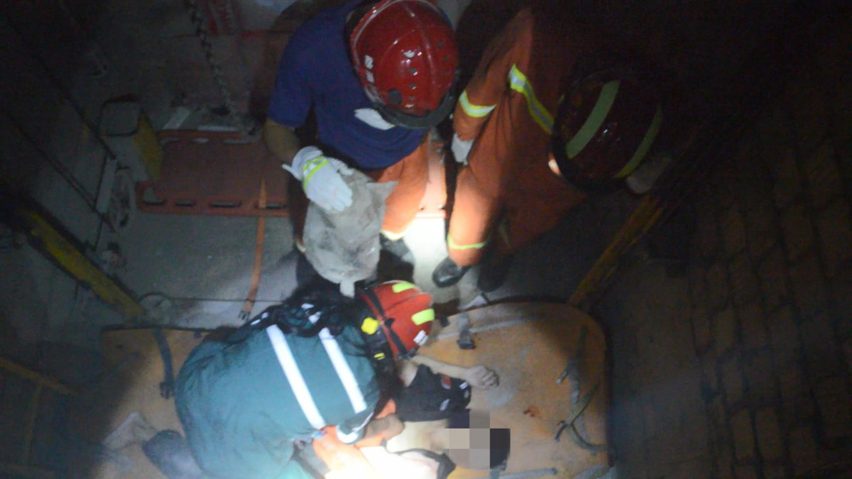 下午14时29分,苏铁路消防救援站指战员到达现场,经了解得知:是一名男子巡检电梯时,不慎从负一楼平台坠入负三楼电梯井。根据现场情况,指挥员立即下令实施救援,队员携带担架、绳索等由负三楼平台下到井底。到达井底后,指战员察看了被困男子伤情,经检查发现男子意识清醒,身上多处受伤。由于电梯井内粉尘较多,指战员将自己的衣服脱下盖住男子的脸部,防止粉尘进入男子眼睛造成伤害。