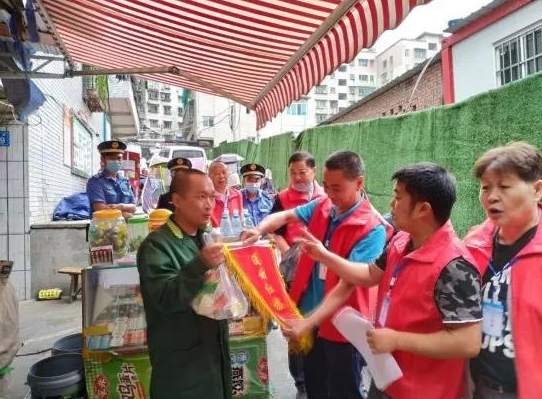 通过完善奖惩机制倒逼自我管理,市中区制定《市中区农贸市场业主积分制管理办法》,每天定时对市场商户进行检查、计分,日常随机抽查,每月根据检查结果综合评比并在市场内公示得分情况。通过张贴光荣榜、发放小礼品、悬挂流动红旗等方式,对综合评比靠前的商户进行奖励,可参选年度“星级商户”、获得更多服务和进入新市场选号的优先权。对连续3个月积分排名末5位的商户,列为市场经营不受欢迎对象,取消提供相应配套服务。