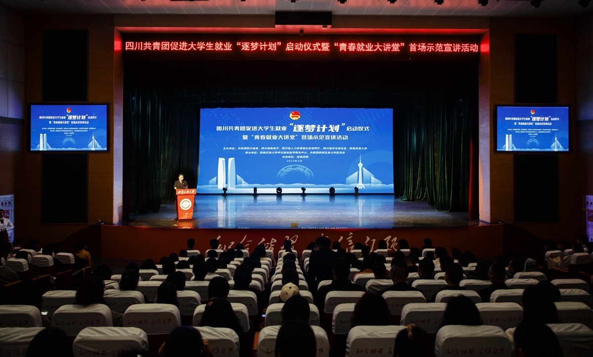 3月28日,四川共青团促进大学生就业“逐梦计划”启动仪式暨“青春就业大讲堂”首场示范宣讲活动在西南民族大学举行。活动现场发布了“逐梦计划”8个就业礼包,四川共青团将实施“逐梦引航行动”、“逐梦建功行动”和“逐梦帮扶行动”,全力促进大学生就业。