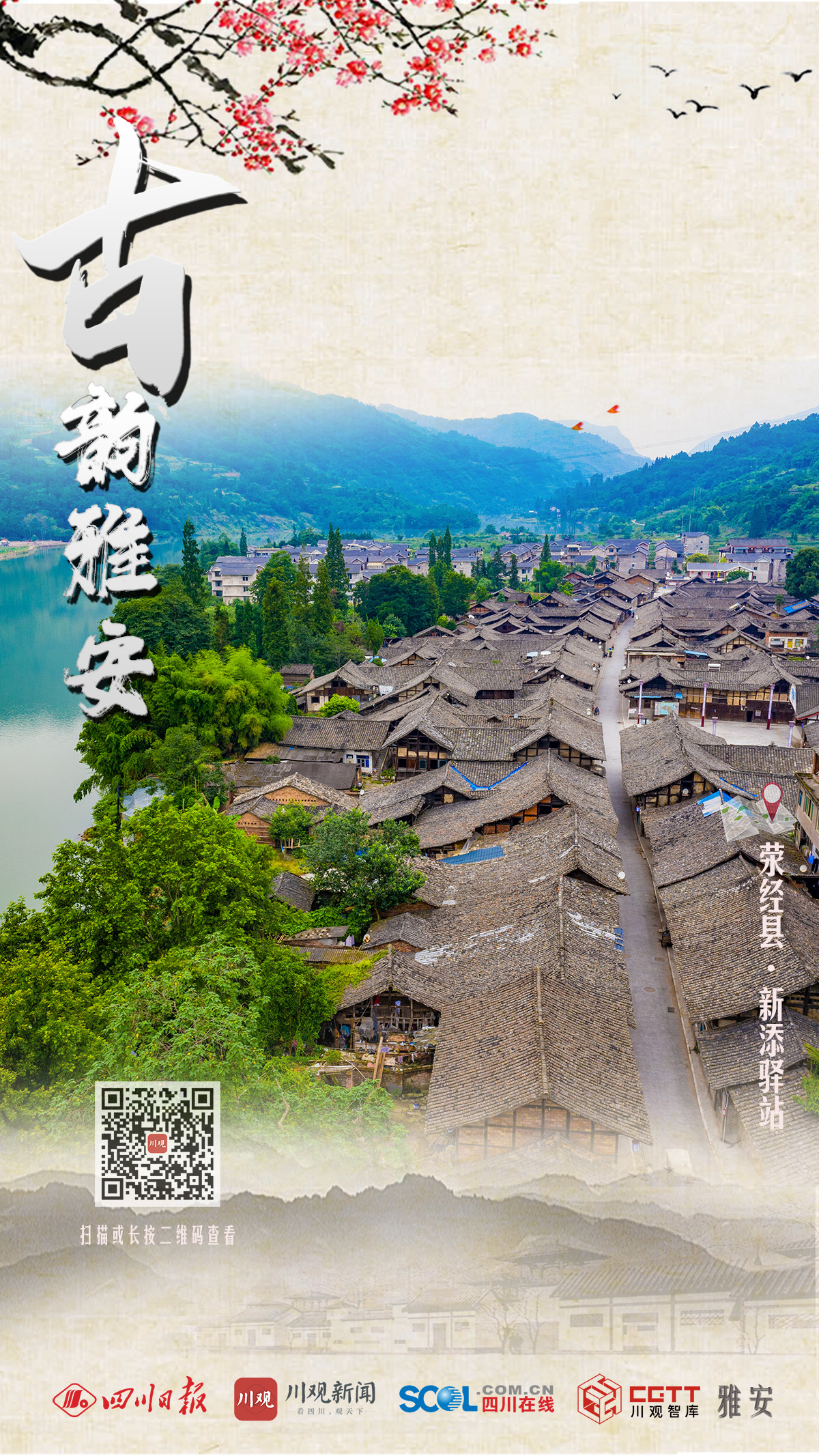 新添驿站位于荥经县城以北的新添镇境内的荥经河畔,依山傍水,南北走向,距县城8公里。新添驿站相传于清朝康乾年间设立,为茶马古道雅安段上的重要驿站。顺治年间,新添站形成了集市,是当时雅安、荥经、天全三地物资交流的重要集市。昔日的新添驿站市场繁荣、客商云集,受五湖四海商客带来的文化影响,逐步形成了丰富多样的民间艺术,场镇内戏台子、戏园子等至今完好,更有腊月酒、长街宴等民俗流传至今。