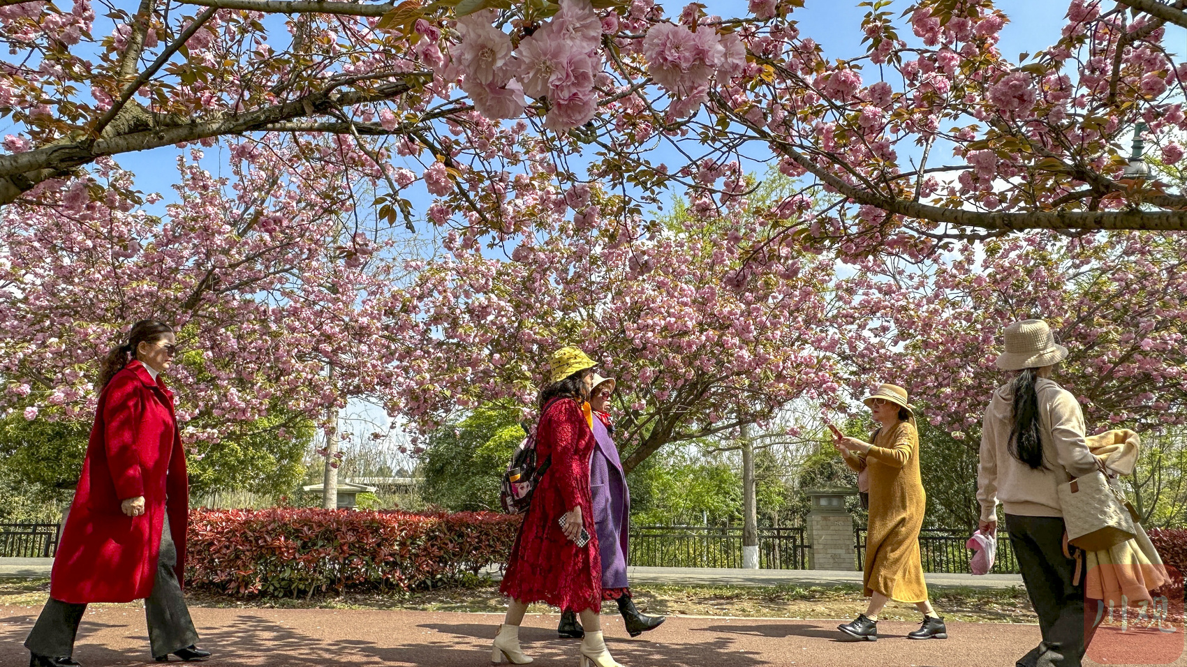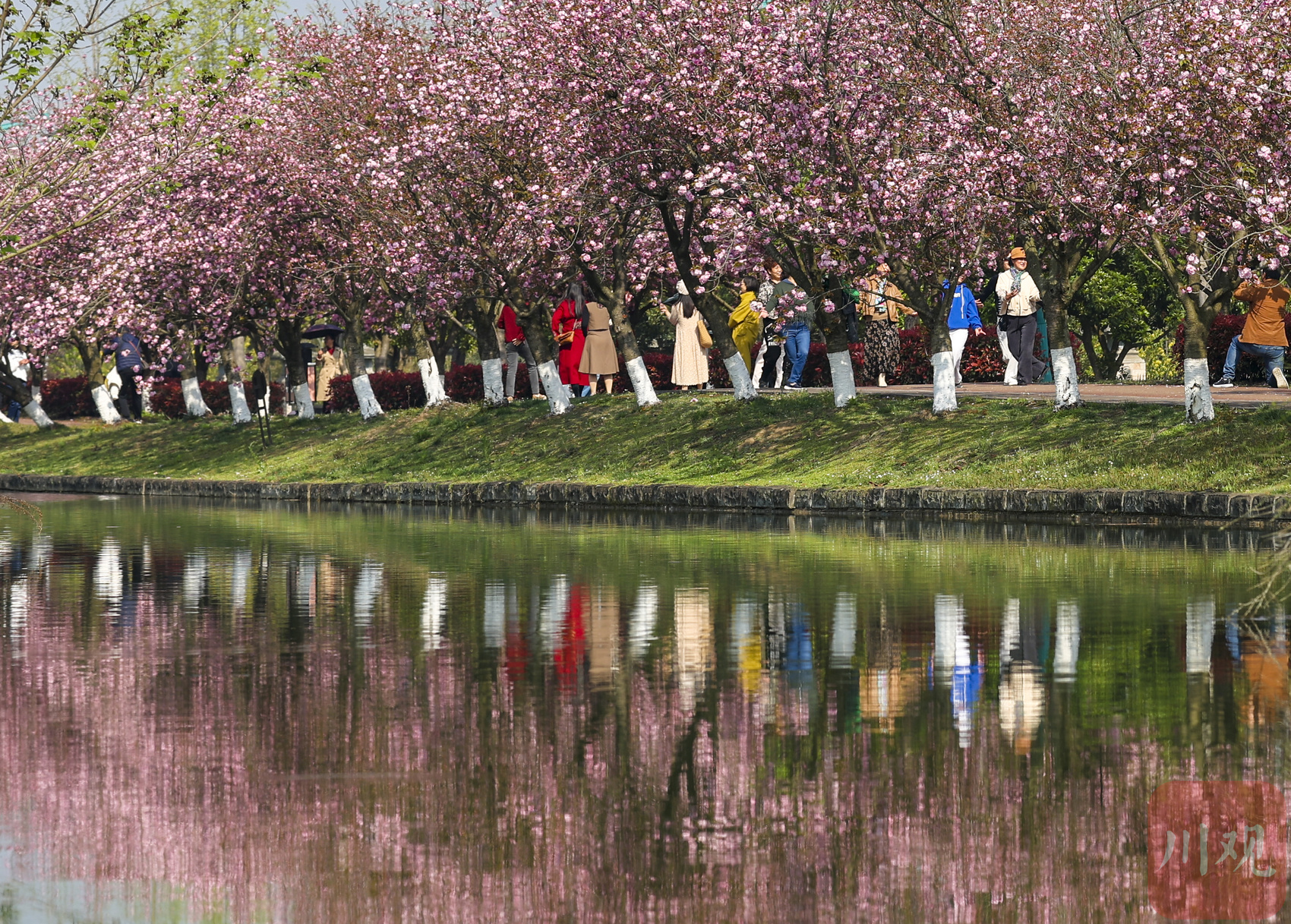 2023年3月29日,成都市青白江区凤凰湖的樱花竞相绽放,吸引不少游人前来踏青赏花。