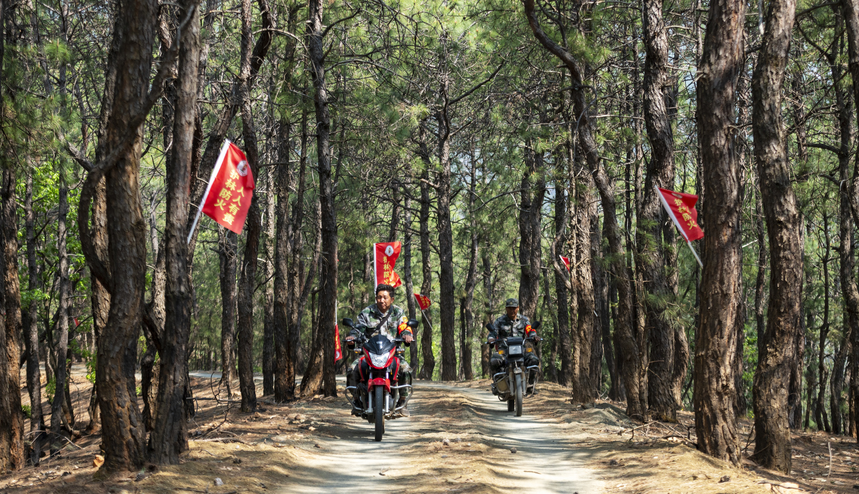 穿梭在林间的森林草原防灭火摩托巡护队。应急厅供图