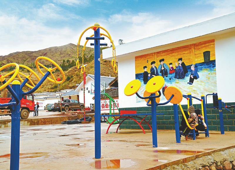 援建凉山州普格县夹铁乡莫尔非铁三峡新村的体育设施。