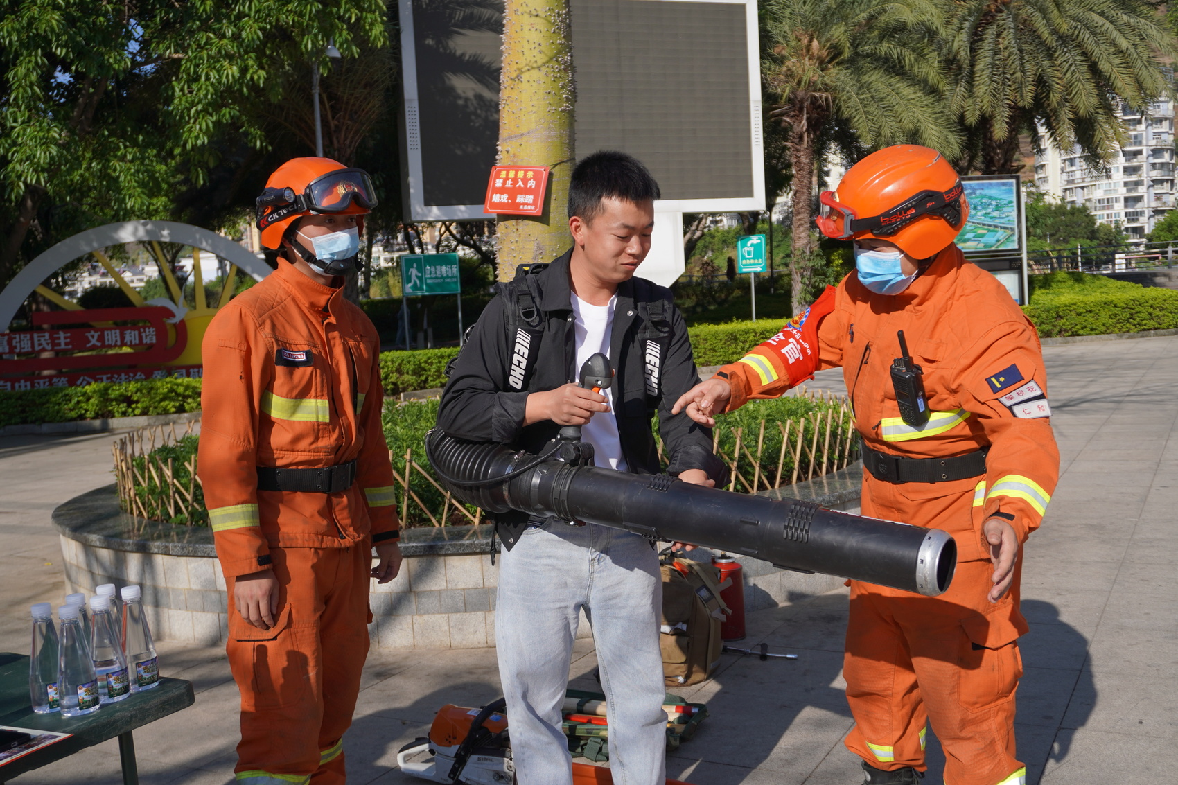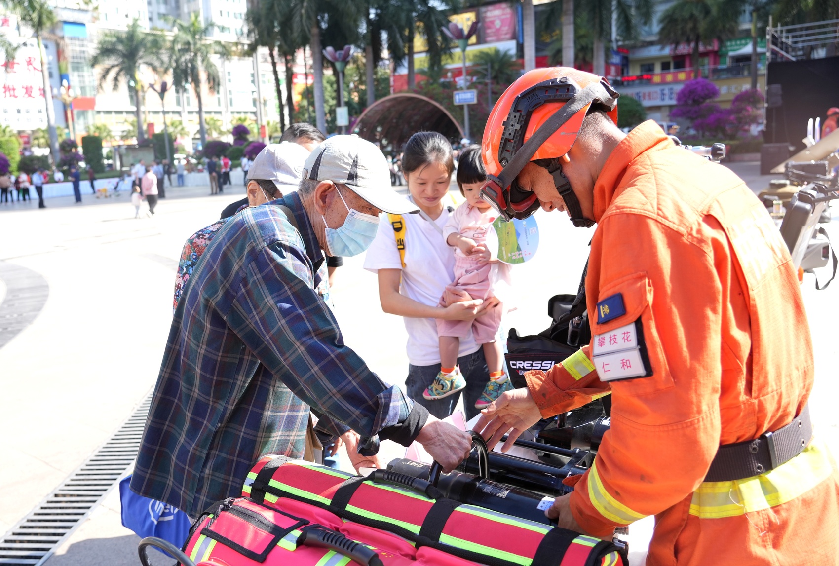 消防救援人员向市民详细讲解救援装备的性能参数与使用方法(李从林 摄)