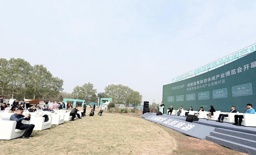 春暖花开,露营正当时!3月31日,2023CSP·成都露营旅游休闲产业博览会(以下简称“露博会”)在青龙湖湿地公园3号草坪开幕。