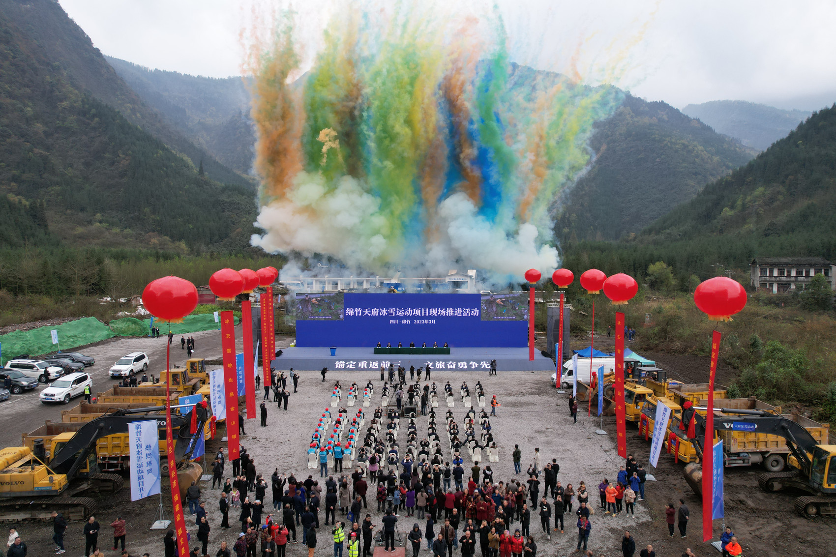 项目推进活动现场,绵竹天府冰雪运动项目正式开建。