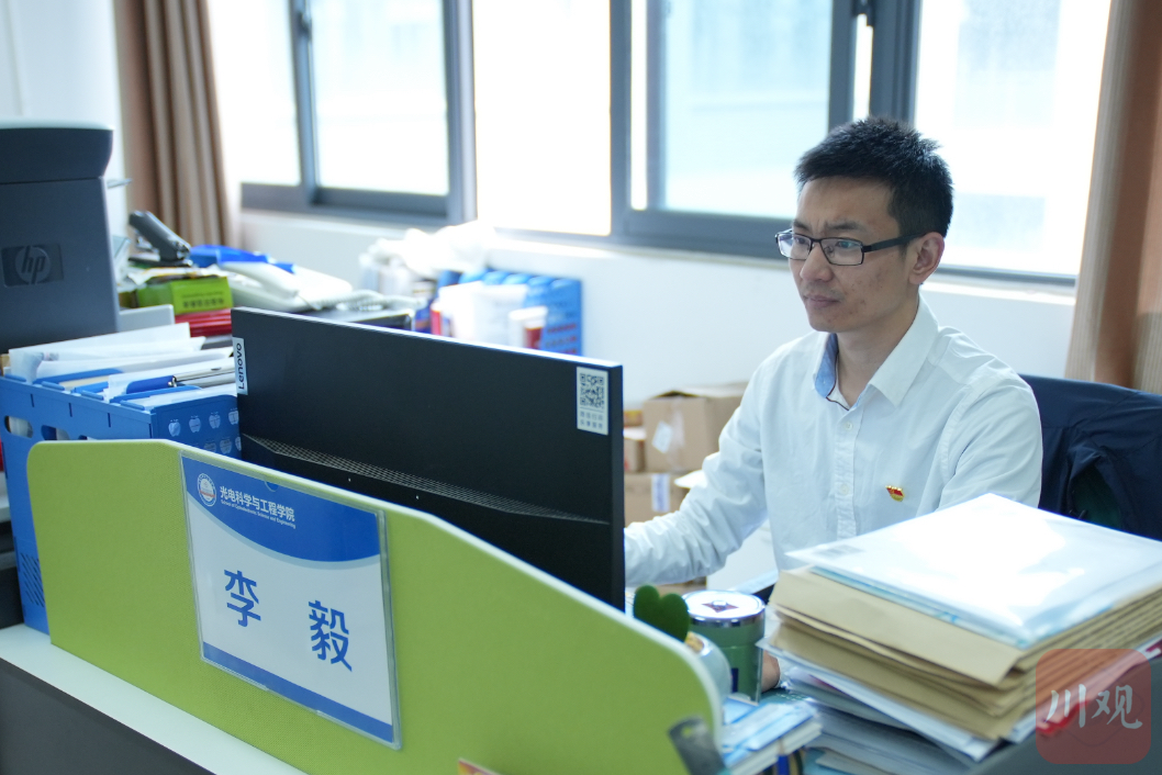 记者在电子科技大学光电科学与工程学院见到李毅时,只见他戴着一副黑框眼镜,白色衬衫搭配黑色牛仔裤,朴素自然,和十多年前刻意“扮成熟”的新人辅导员已经截然不同。