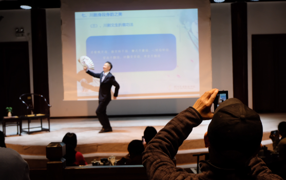 肖德美介绍,自己受师父蓝光临法国立体传播川剧的影响,一直践行“立体传播”的理念,走遍全国北京、上海、苏州、重庆、香港等地企业、高校、中小学、院团,开展超百场推广讲座,他在川剧推广过程中,向大家展示巴蜀人的幽默,四川人的风土人情这些美好的东西。