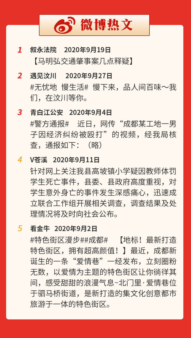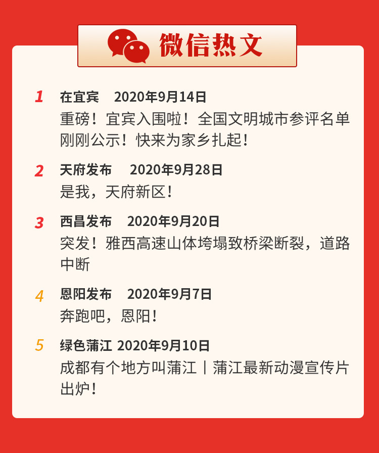 此外,指数还统计了9月四川县级单位发布的微信和微博最热文章,详情如下: