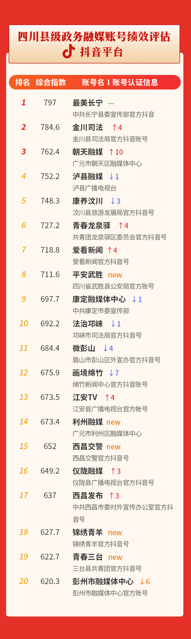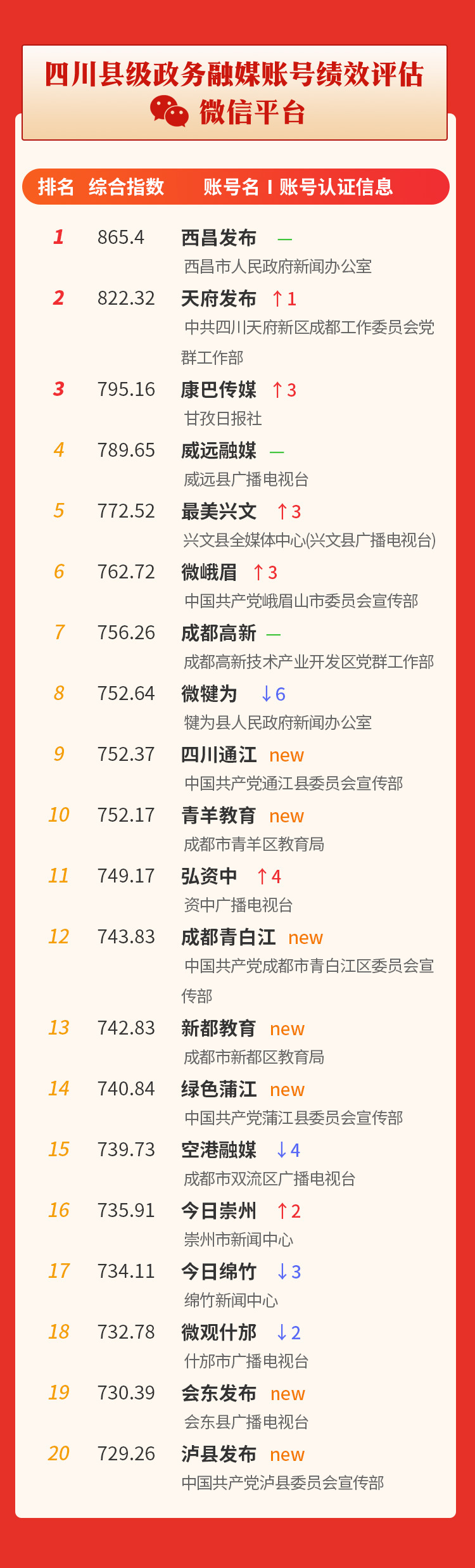 9月“四川县级政务融媒账号绩效评估”详情如下: