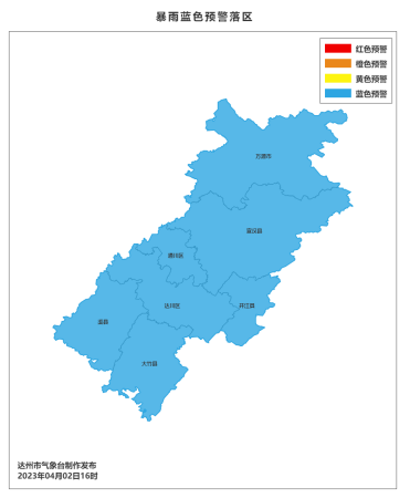 昨(2)日下午,达州市气象台发布今年首个暴雨蓝色预警:预计2日晚到3日白天,达州市有一次明显的降雨天气过程,雨量普遍中到大雨,部分地方暴雨(30~70毫米),最大小时雨强20~40毫米。