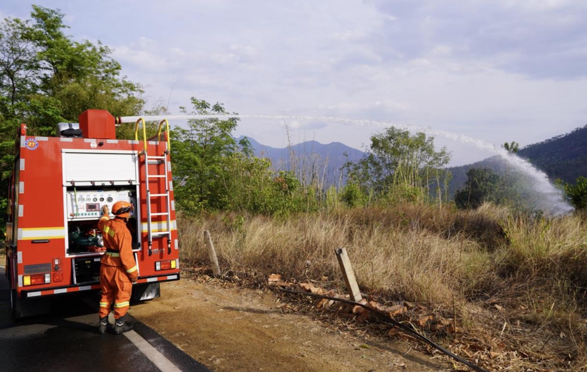 进入4月,攀枝花市米易县已进入森林草原防灭火紧要期,大风天气多、农事用火、生产用火等诸多因素交织叠加,使得引发森林草原火灾的风险明显增大。4月3日,攀枝花市森林消防支队米易驻防分队对草场镇林区高危火险区域、公路沿线进行洒水增湿作业,筑牢森林草原防灭火“防火网”。