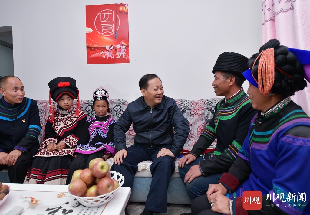 15日上午,彭清华来到瓦都乡宜牧村、火烈乡地莫村,入户看望拉马么拉五、吉尔吾呷,与他们亲切交谈,了解有关情况。两个村子新居鳞次栉比,随处可见“谁脱贫、谁光荣”“依靠党的好政策、勤劳致富奔小康”等标语,村上还成立了黑绵羊、乌洋芋合作社,大力发展民族手工艺,贫困群众收入来源更加稳定。