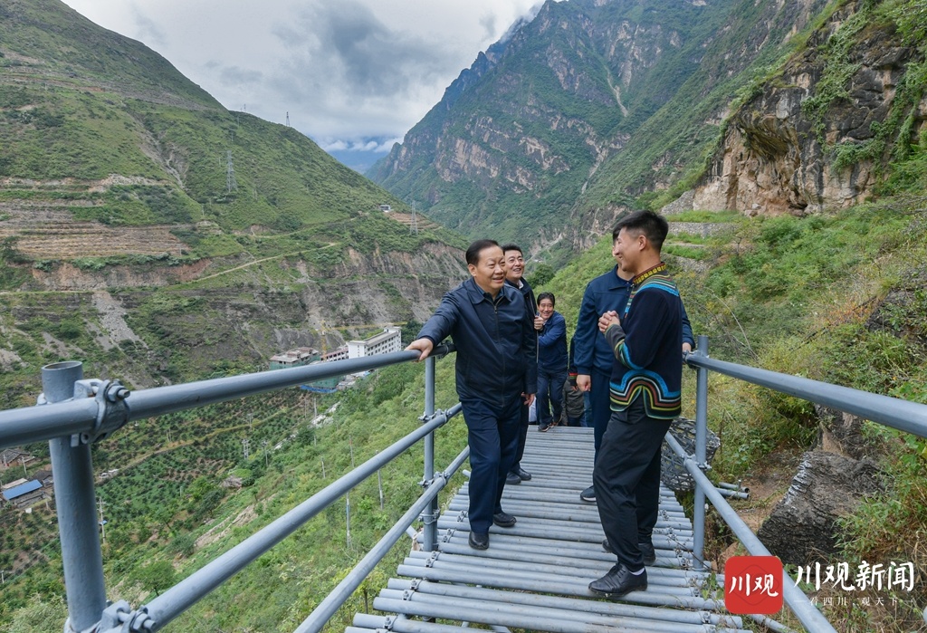 10月13日,省委书记彭清华来到全国关注的“悬崖村”—昭觉县支尔莫乡阿土列尔村,登上通往村寨的钢梯,一边察看建设维护情况,一边听取村民讲述从藤梯、钢梯再到楼梯的巨大变迁。