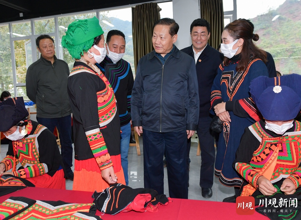 10月13日,省委书记彭清华到美姑县牛牛坝乡北辰社区调研。在广东(佛山)刺绣扶贫加工车间,彭清华与务工群众交谈,了解东西部扶贫协作在基层落实成效。