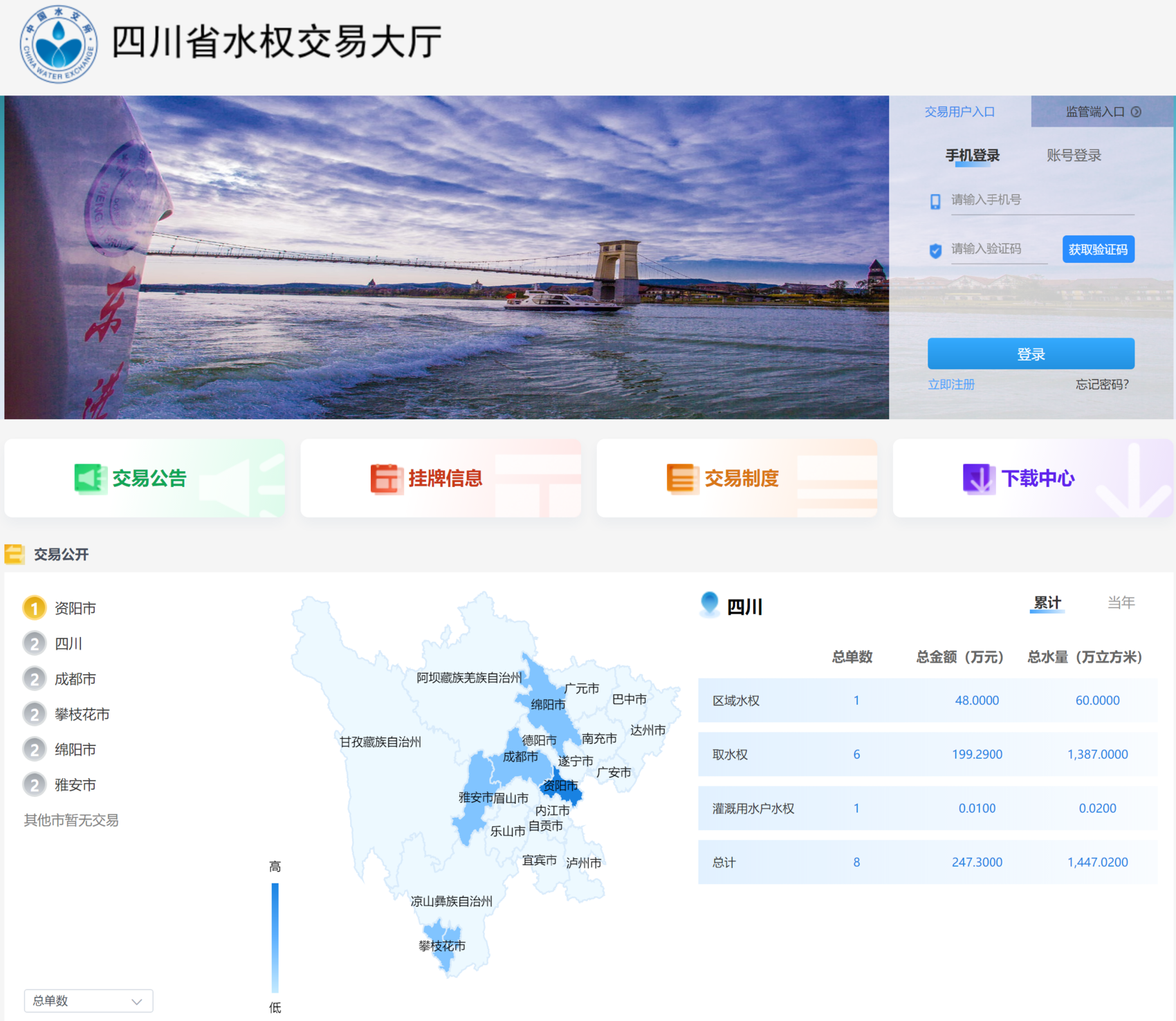 4月3日,记者从四川省水利厅水权与水价改革领导小组办公室获悉,“四川省水权交易大厅”当天已正式上线。