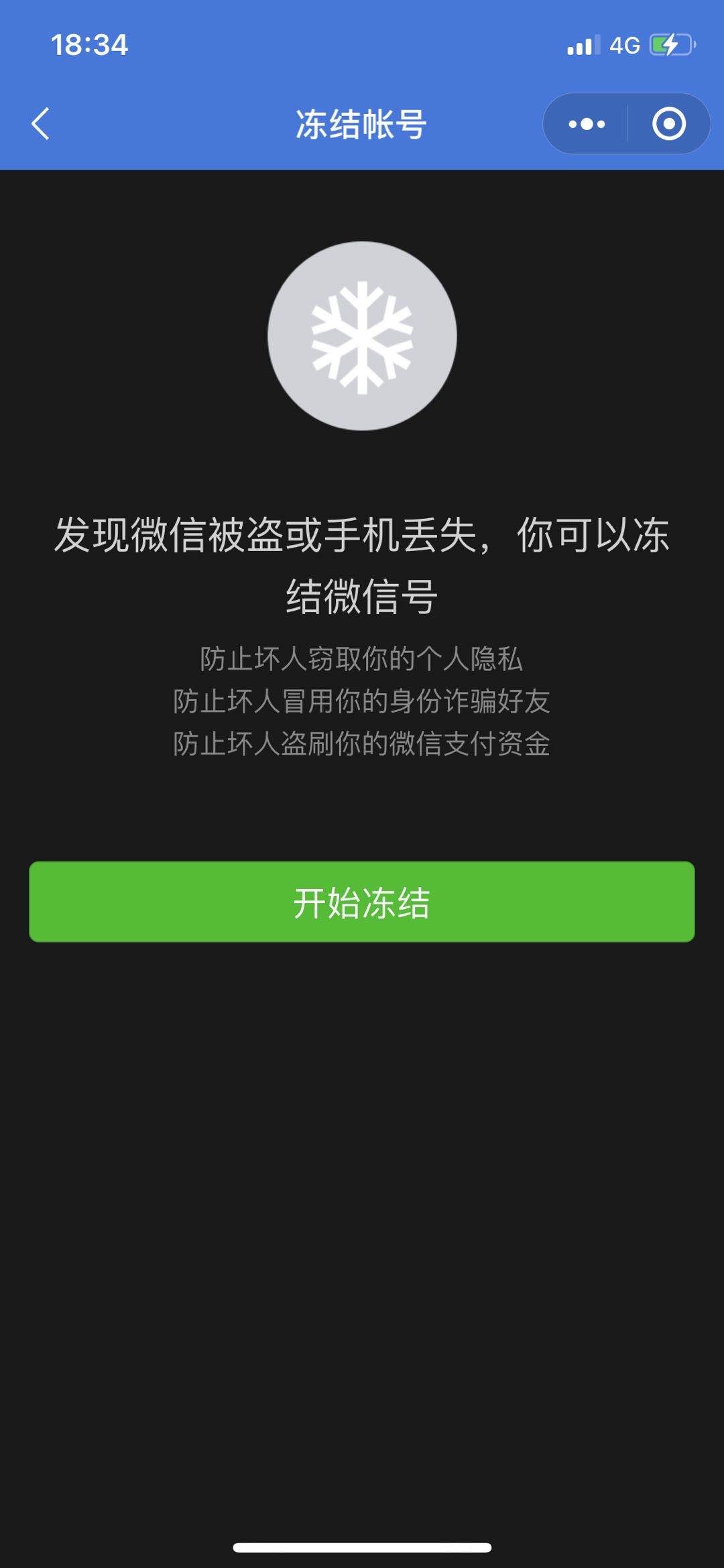 3、页面弹出“冻结账号”小程序,用微信扫之