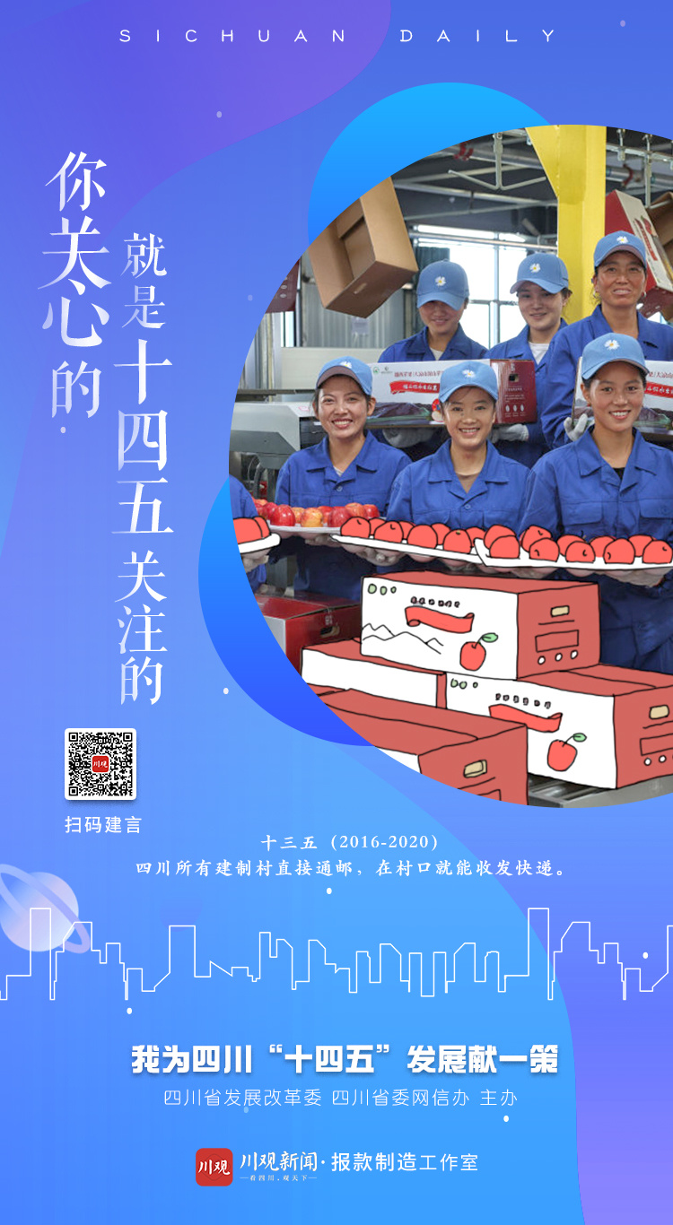 十三五(2016-2020)四川所有建制村直接通邮,在村口就能收发快递。