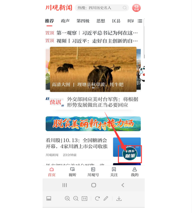 打开川观新闻客户端,在首页点击悬浮球新闻图标,进入“我为十四五献策”留言页面,发表建言。